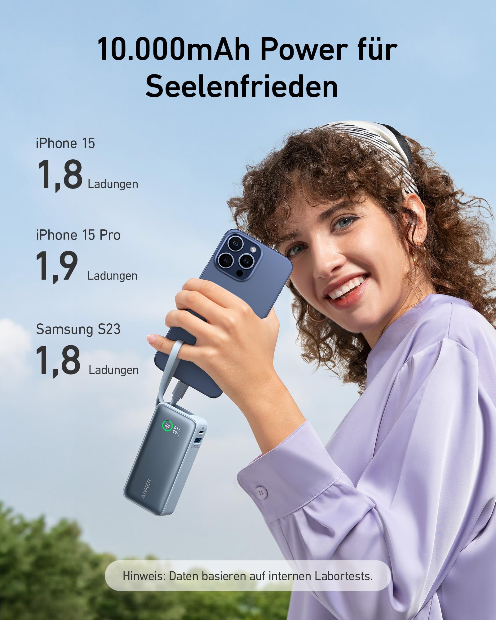 INCLUDED IN THE BOX: Anker Nano Powerbank (30W, integrated USB-C cable), user manual, our worry-free 24-month assurance, and friendly customer service."