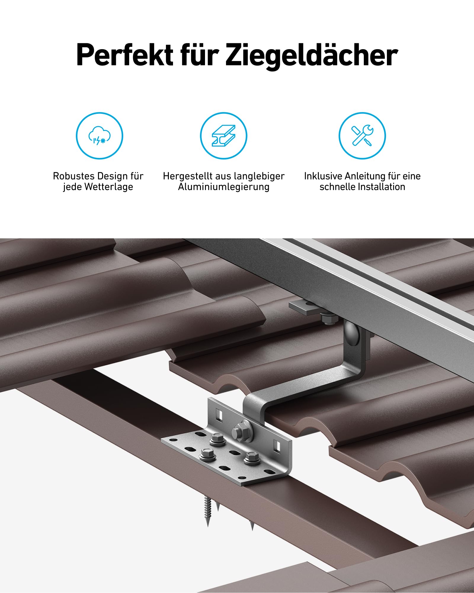 Anchor SOLIX pitched roof mounts, 2-panel, tile roof, aluminum alloy, weatherproof and sturdy, silver color, solar panel mounting for balcony solar systems