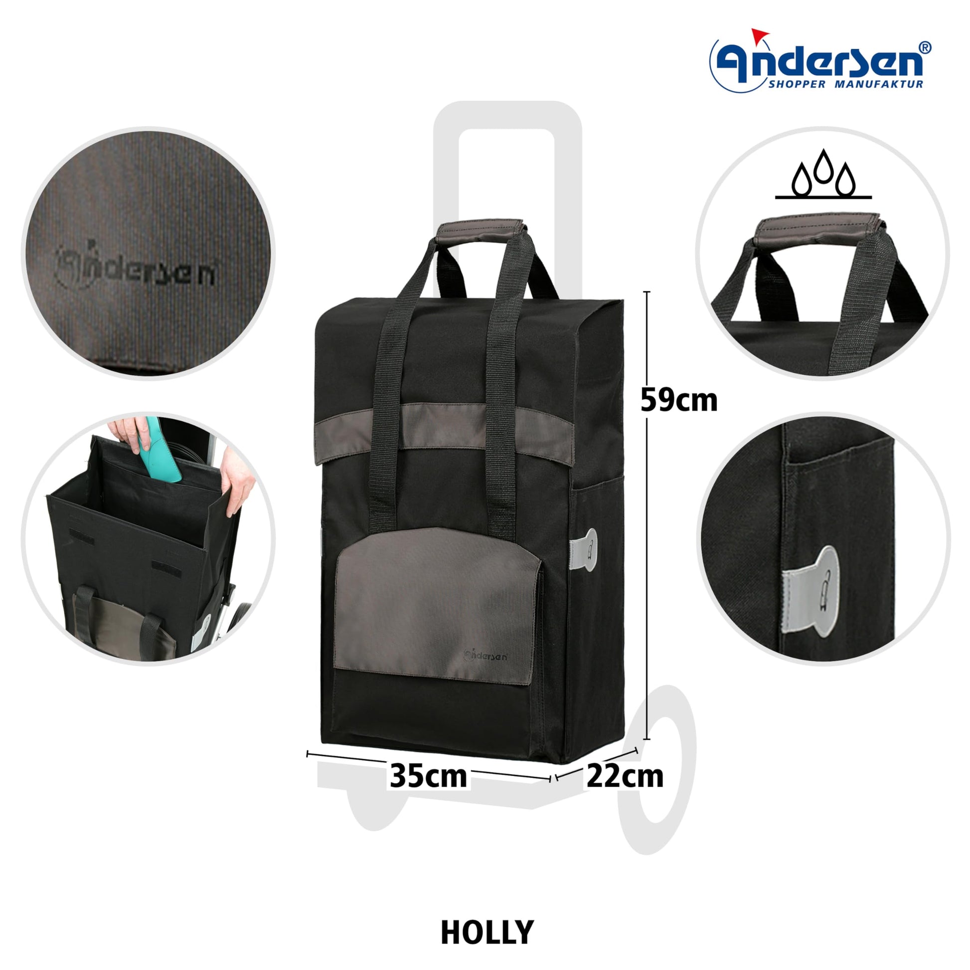 Andersen shopping trolley - foldable - 49 liters - stair climber - load capacity 60 kg - steel frame - trolley - wheel Ø 3 x 13 cm - Royal Shopper Steel Holly black