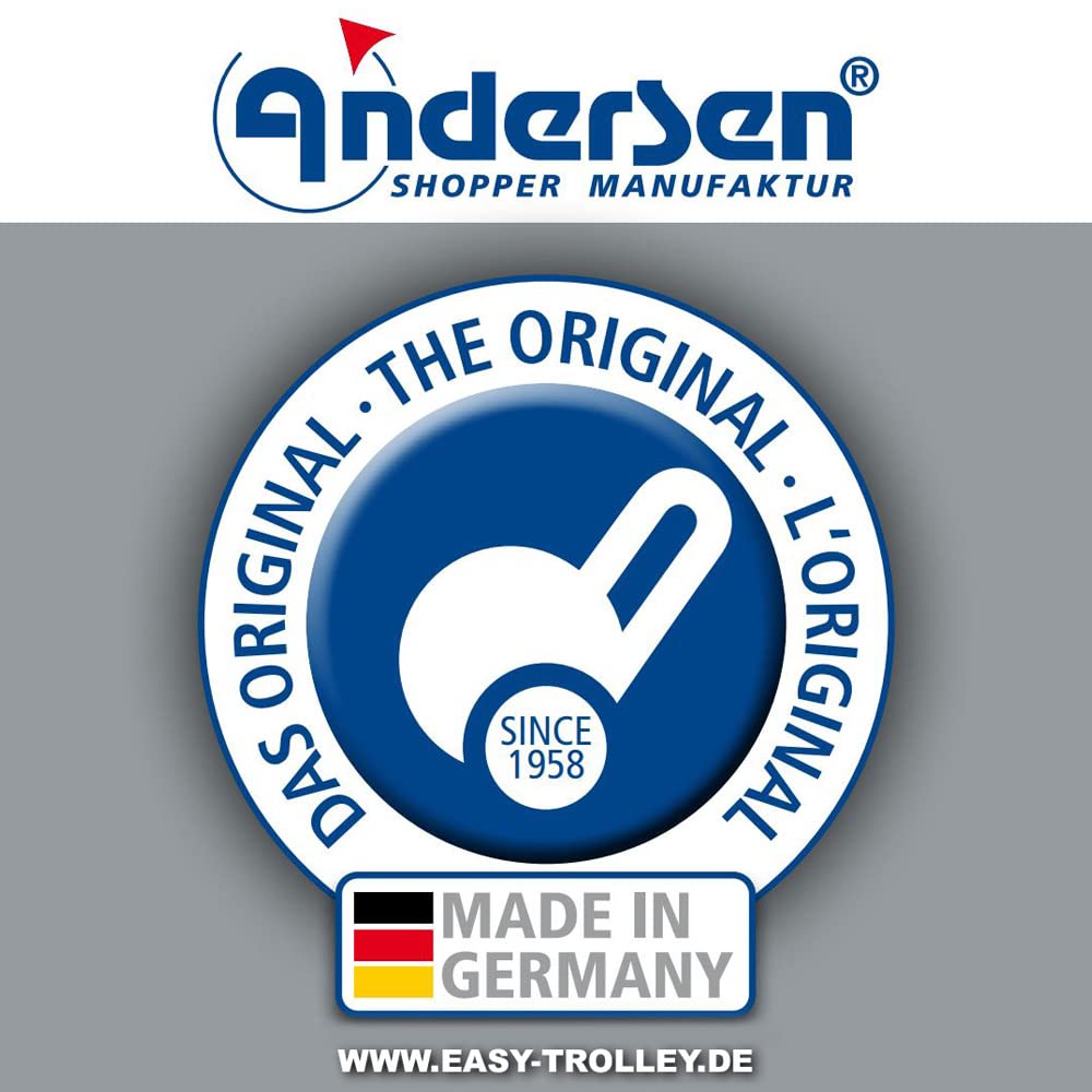 ["Frame: folding handle space-saving / Weight of frame: 1900 g / Height of frame: 101 cm / Base (Width x Depth): 36 x 27 cm / Distance between wheels: 45 cm / Maximum load: 40 kg / Can be used as a bicycle trailer","Wheels: lightweight wheels / Diameter of wheels: 15 cm / Wheels easy to remove with just one hand movement","Bag: Weight of bag: 900 g / Dimensions H x W x D: 59 x 36 x 23 cm / Reflectors / Bag easy to remove / Volume: 50 l / Side pocket / Inner pocket for e.g. mobile phone or wallet / Hydrophobic","Scope of delivery: Shopping cart Scala / Bag Vara white","Original Andersen shopping trolley / Made in Germany for 60 years | ☼ Shipping to islands and DOM-TOM excluded. Please contact us if needed."]