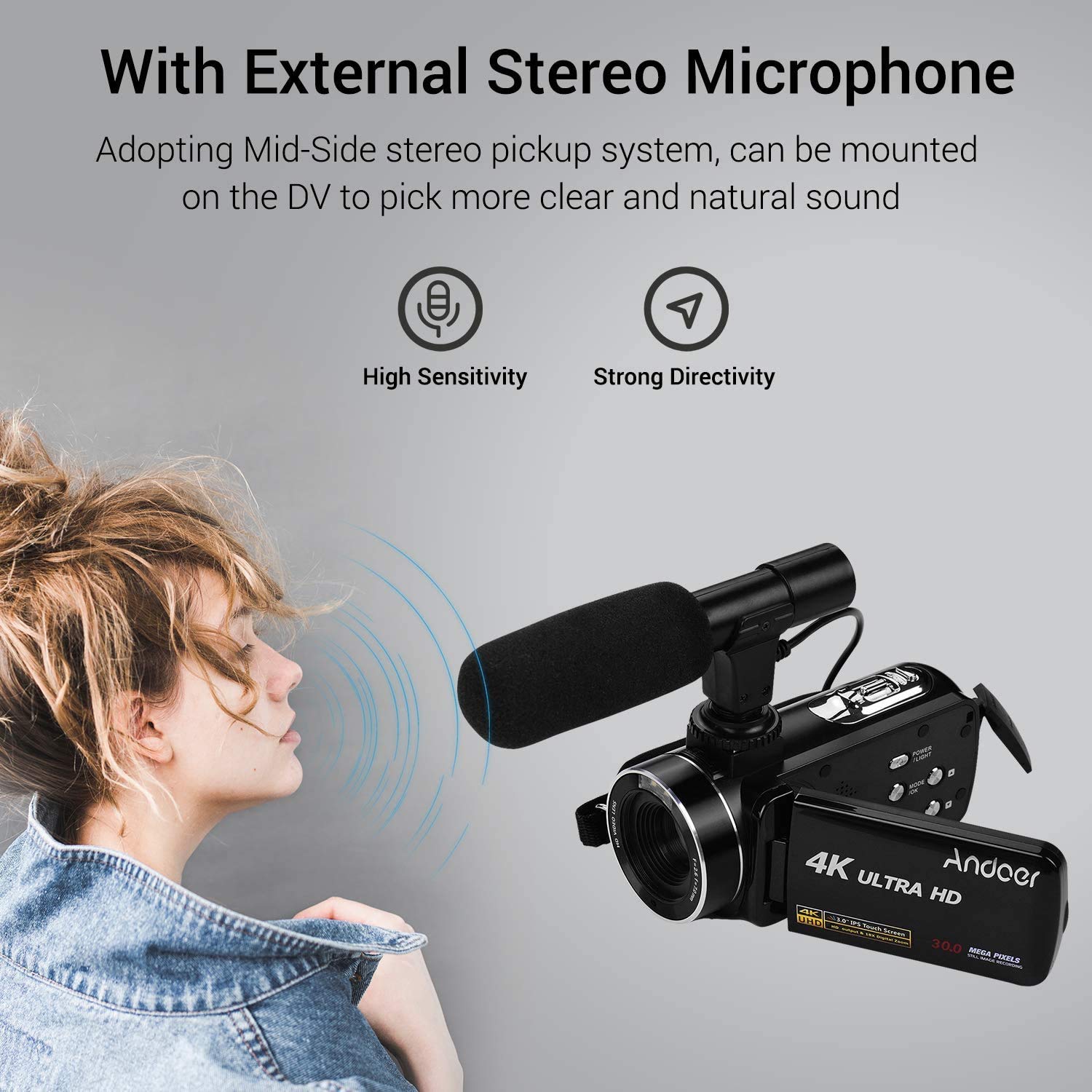 Andoer HD video camera, 4K video camera, Full HD, CMOS sensor, 18x digital zoom camera, 3.0 inch LCD, with 0.45x wide-angle lens and microphone.