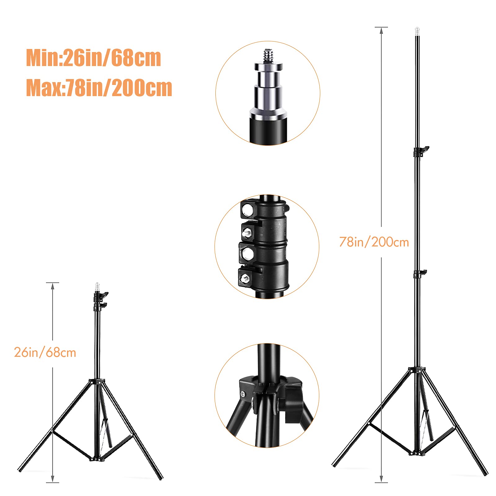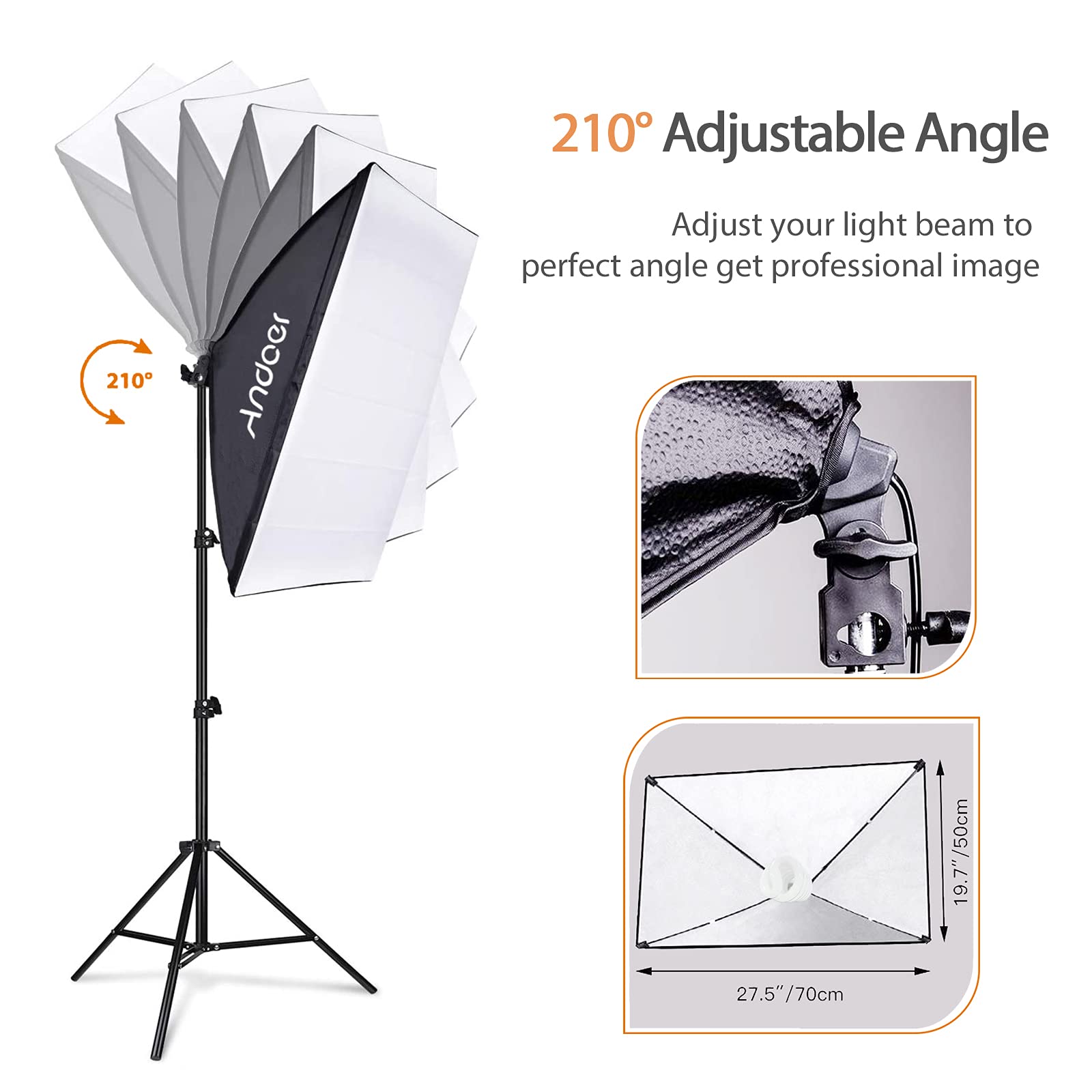 ["【LED video light with high brightness and bicolor temperature】 The LED light with 140 high-quality beads supports an output power of 85W and energy saving of 80% compared to other similar lights. and 3 lighting modes (cold light, cold + warm light, warm light), bicolor temperature of 2800K–5700K and 1-100% adjustable brightness.","【50*70 cm / 20*28 inch large flexible softbox】 Large softbox with white diffuser cloth provides perfectly even lighting; with E27 socket for direct installation of LED light; And the softbox can be rotated by 210° to provide you with optimal light angles and make your photos and videos more professional.","【Sturdy and adjustable metal light stand】 The light stand is made of high-quality aluminum alloy and can be extended from 68-200 cm / 26-78 inches. The stable 3-leg construction and solid locking system ensure safe and reliable use. And the boom arm allows you to flexibly arrange a top light source.","【With remote control for convenient wireless operation】 Remote controls are included to turn the light on and off and adjust the brightness and color temperature from a certain distance. You no longer have to move when adjusting the light during shooting, saving time and effort.","【Background for more professional photography】 With 3 pieces of 2*3 meter large backgrounds (White/Black/Green), 3 pieces of background clips, and 1 set of background stands, the backgrounds can help absorb light and eliminate reflections, suitable for studio portrait shooting and fashion photo shoots, kids photo shoots, or still life shots, etc."]