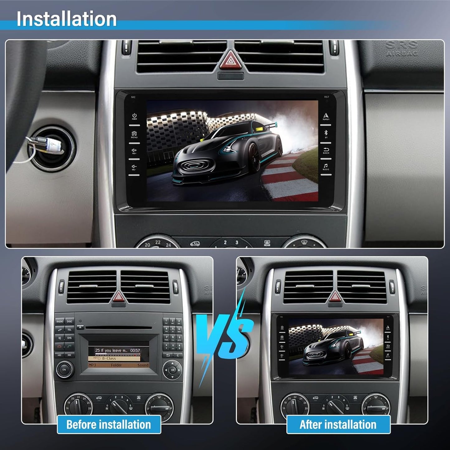 ["Android 13 Car Stereo for Mercedes Benz —— Car Radio for Mercedes Benz A-Class W169 A150/A160/A170/A180/A200 (2004-2012), Mercedes Benz B-Class W245 B160/B170/B180/B200 (2004-2012), Mercedes Benz V-Class W639, Mercedes Benz Vito and Mercedes Benz Viano (2006-2014), Mercedes Benz W906 Sprinter, Mercedes Benz Sprinter 2500 (2006-2012) and Mercedes Benz Sprinter 3000 (2006-2012). Android System Quad Core and 1GB RAM + 32GB ROM provide smooth operation and fast response","Mirror Link —— Screen Mirror Link, get all features of your phone on this car radio screen, watch YouTube and phone maps on stereo screen once connected. IOS and Android connection can be done through USB data cable, Android users need to set some permissions in developer option before connecting Mirror Link","GPS Navigation & WiFi Connect —— 8 inch car radio for Mercedes Benz built-in WiFi module, supports online/offline maps. Built-in offline map of North America. Online map can also be supported, after connecting to WiFi, you can use GPS navigation at any location. This item allows installation or deletion of Android apps from the Application Store, just like a smartphone","FM Radio & Bluetooth —— Bluetooth enables you to effectively stream music from the phone to the car radio, answer and hang up phone calls with just one press of a button, making daily driving easier and safer. Built in FM/RDS, automobile level chipset provides the best radio signal reception performance, enjoy the best FM stations and drive to the rhythm of the city","Steering Wheel Control & Rear View Camera —— The car radio for Mercedes Benz w169 supports remote control via steering wheel, including switching songs, adjusting volume, answering calls, etc., you can easily operate during driving. Equipped with a rear view camera with waterproof, excellent night vision and 170° ultra wide view. When reversing, the image of the rear view camera is automatically displayed on the touchscreen"]