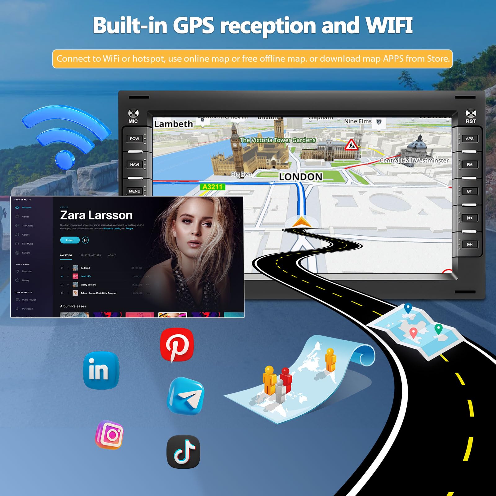 "【Built-in GPS Navigation WiFi & EQ】The user can directly download from the Play Store to support offline navigation, compatible with Waze/Navfree/Google Map, etc. As long as there is a destination, you can go wherever you want and never get lost again! You can also connect to Wi-Fi and listen to music online, watch videos. A variety of EQ sound scenes can be selected, allowing you to experience a more diverse range of sound effects.",