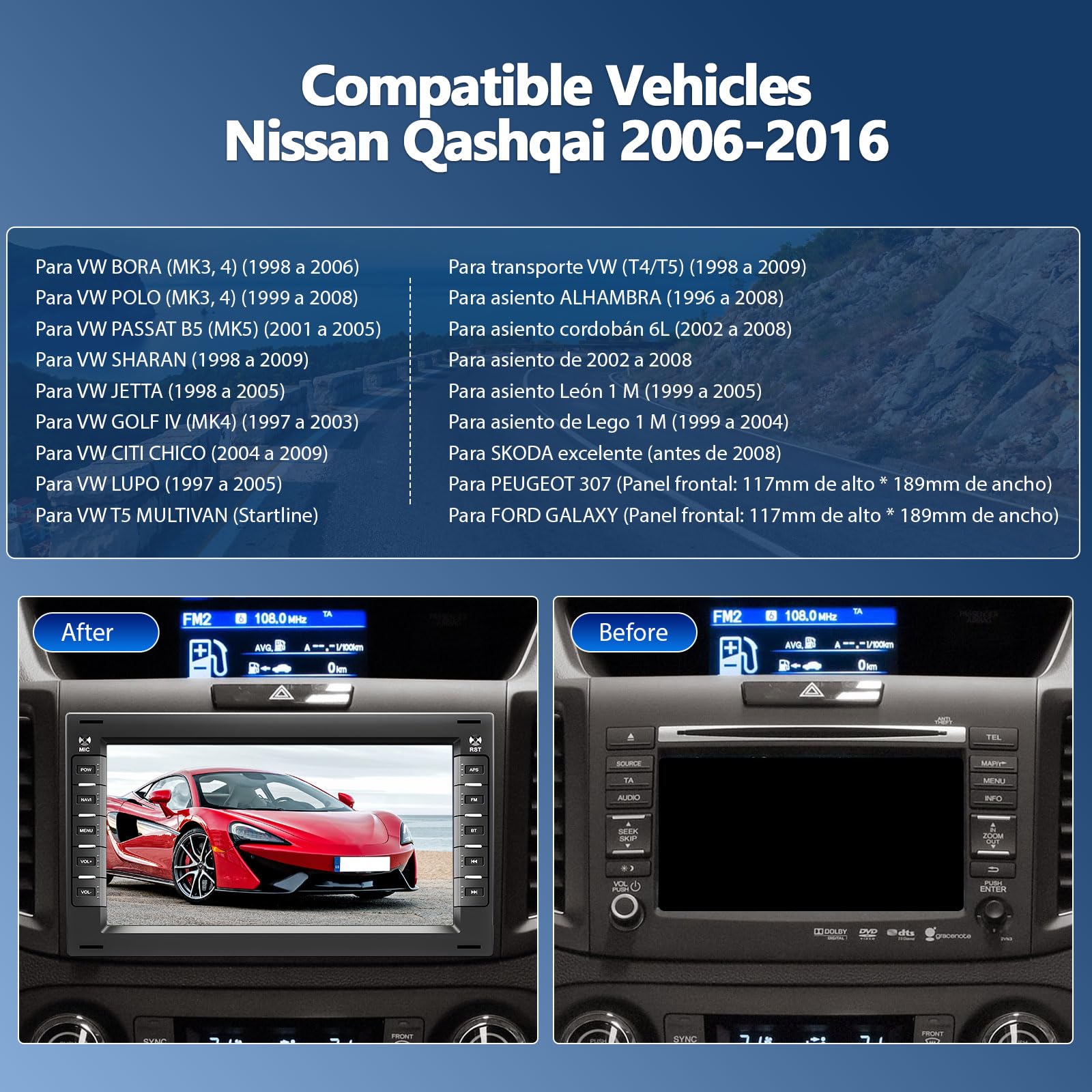 ["【7-inch Car Radio for Volkswagen】7 inch touchscreen for Volkswagen. Fully capacitive touchscreen, easy to use, well-designed automotive user interface. Screen size: 7.4 inches x 4.6 inches, Body thickness: 3.7 inches. If you can't find the adaptation problem, you can take a photo of the center console with us. We will help you determine.",