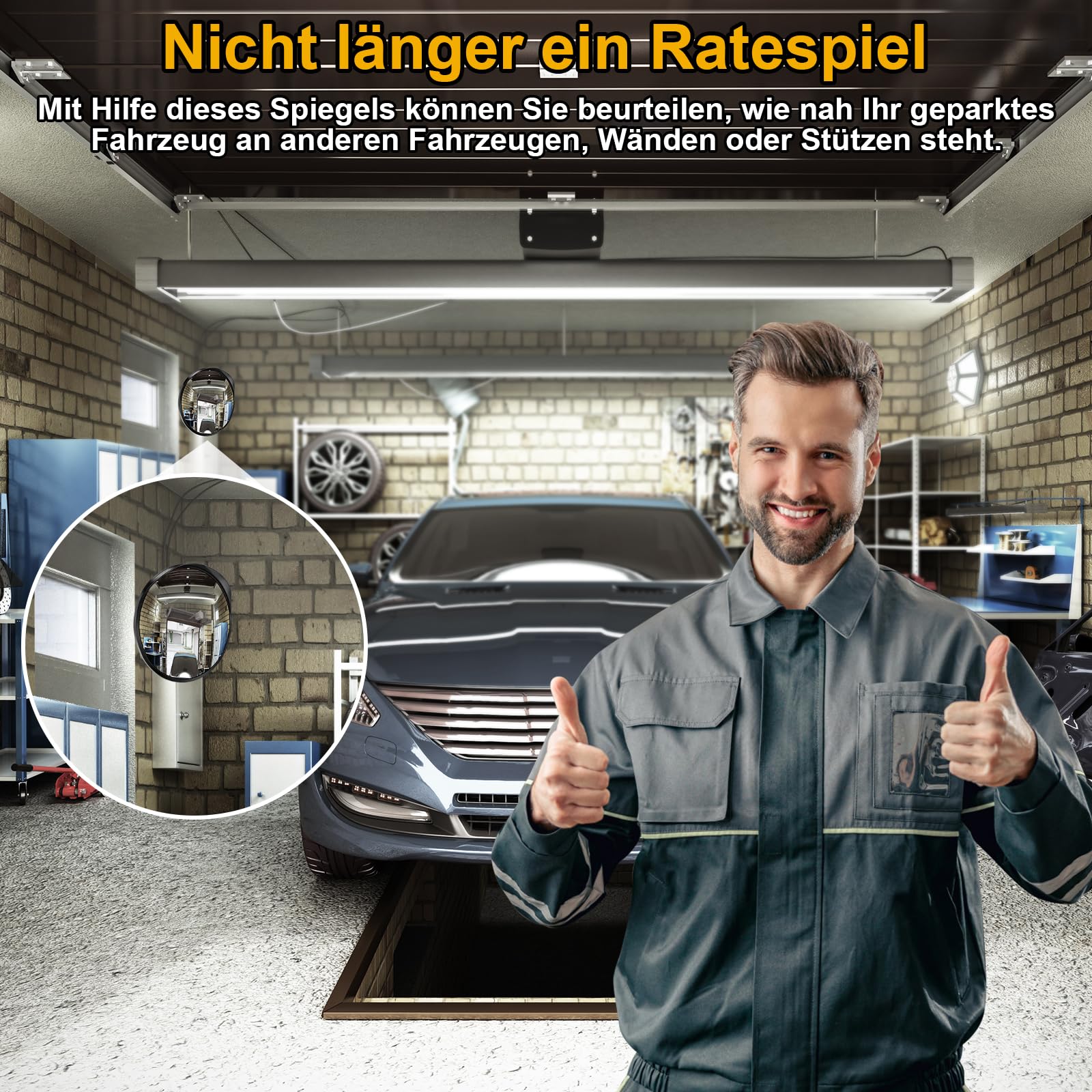 "EASY INSTALLATION AND ADJUSTMENT: The garage mirror features a patented swivel assembly and can be adjusted to almost any position and angle. Simply attach the mirror to the bracket. An installation guide is included in the packaging,"