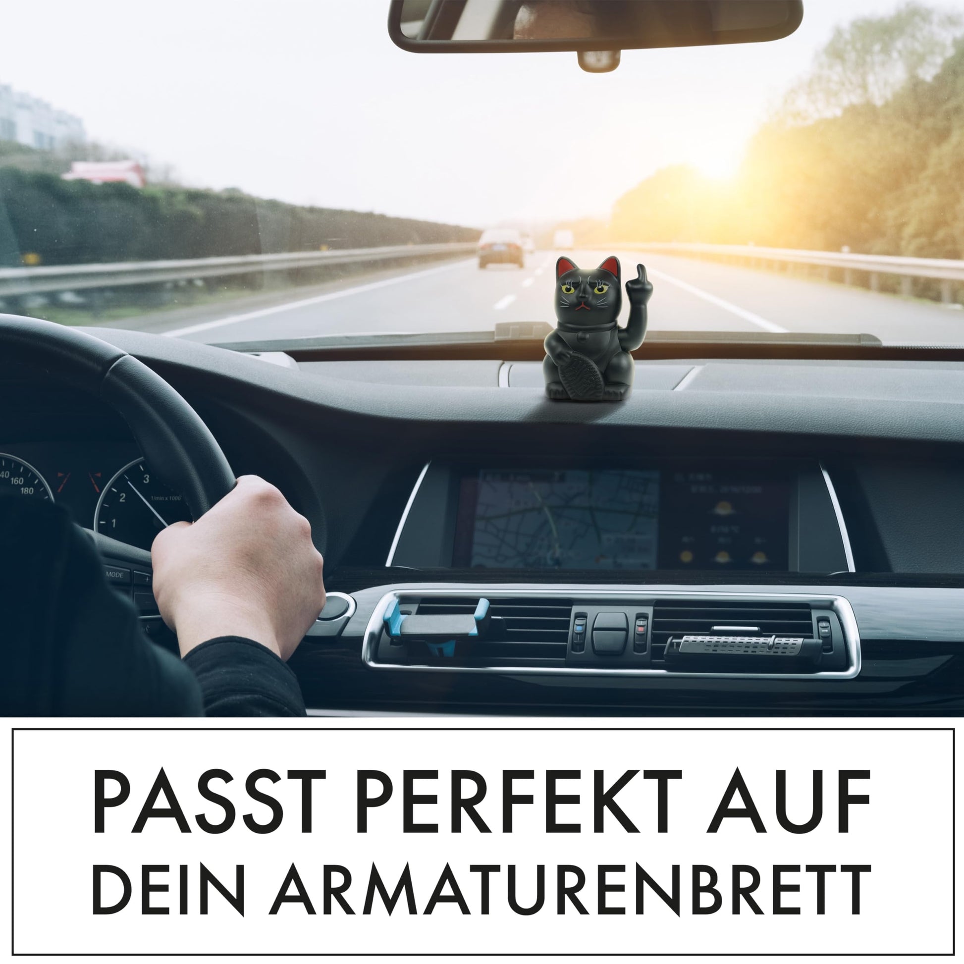["✅ ANGRY WAVING CAT: Asian lucky cat with a twist. The solar-powered ANGRY CAT has a mean look and is perfect for making a statement and going against the norm. Express your opinion in a sleek matte black design","✅ PERFECTLY NAUGHTY GIFT: Our funny Japanese Lucky Cat waving cat greets others with a waving middle finger and always brings a laugh as a gift. Great for greeting neighbors, guests, or your boss. You can now warmly greet other drivers with the new sticker underneath the cat","✅ SMALL AND LIVELY: The naughty 4-inch Maneki-Neko bobblehead not only impresses with a funny design, but also features a new solar panel on the back. The arm waves silently whenever there is light, without using batteries","✅ SUPERIOR CUSTOMER SERVICE: If for any reason you are not satisfied with the funny waving middle finger cat, you will get your money back. Up to 30 days after the purchase","✅ SATISFACTION GUARANTEED: Your satisfaction is our priority. That's why the waving cats are locally tested in Berlin by us for a high quality standard and durable construction"]