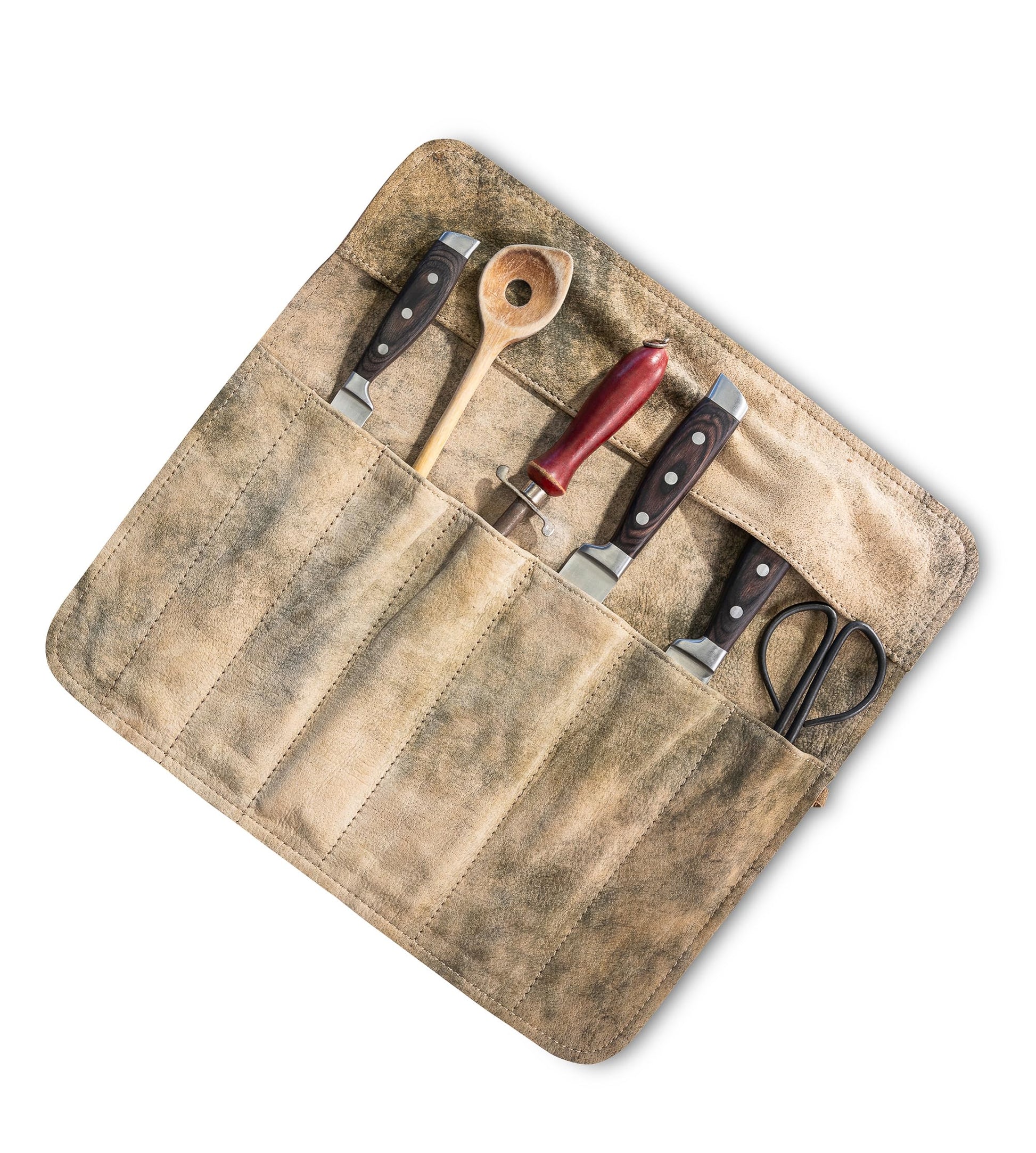 Angus Stoke knife bag Chef knives - Premium Leather Chef knife roll large - Knife bag for chefs - Chef bag Noah (Beige-Antique)