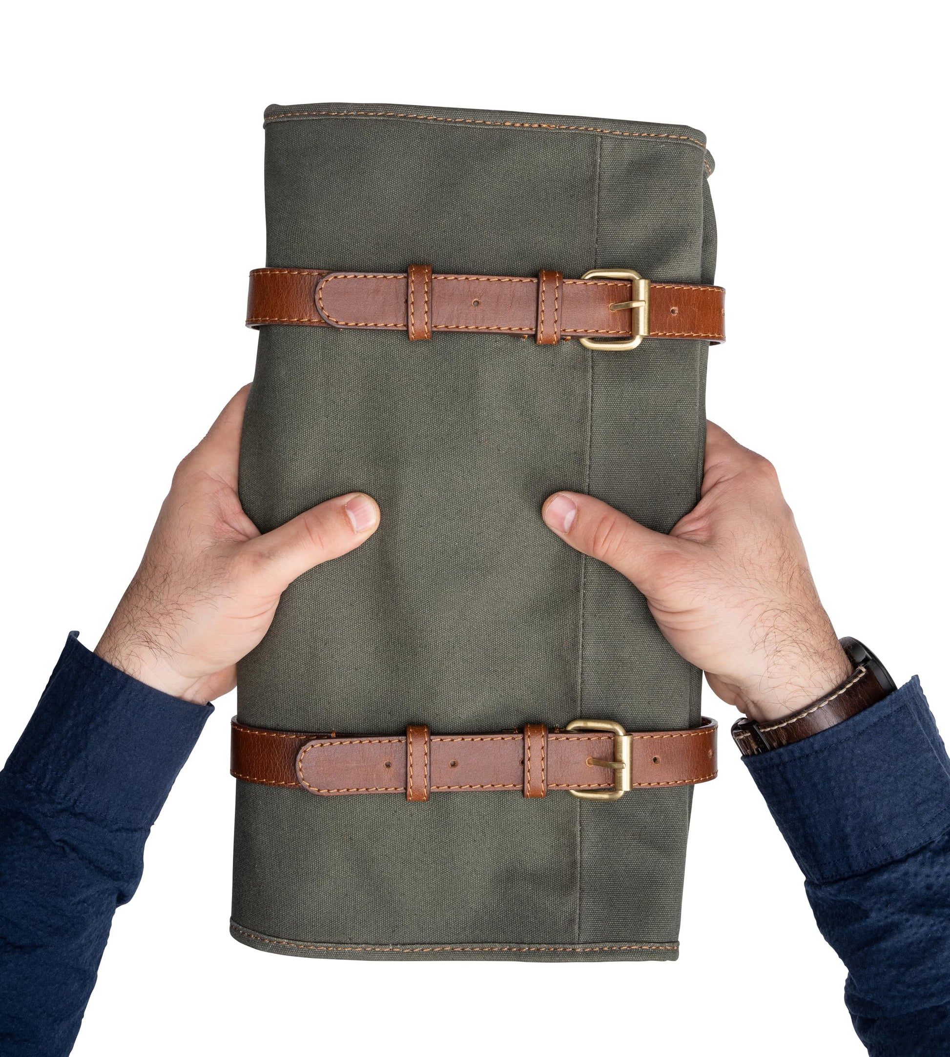 Angus Stoke XXL knife bag with 16 compartments & plenty of storage space – multifunctional & tool bag made of canvas & leather – knife roll Marc (Olive Green)