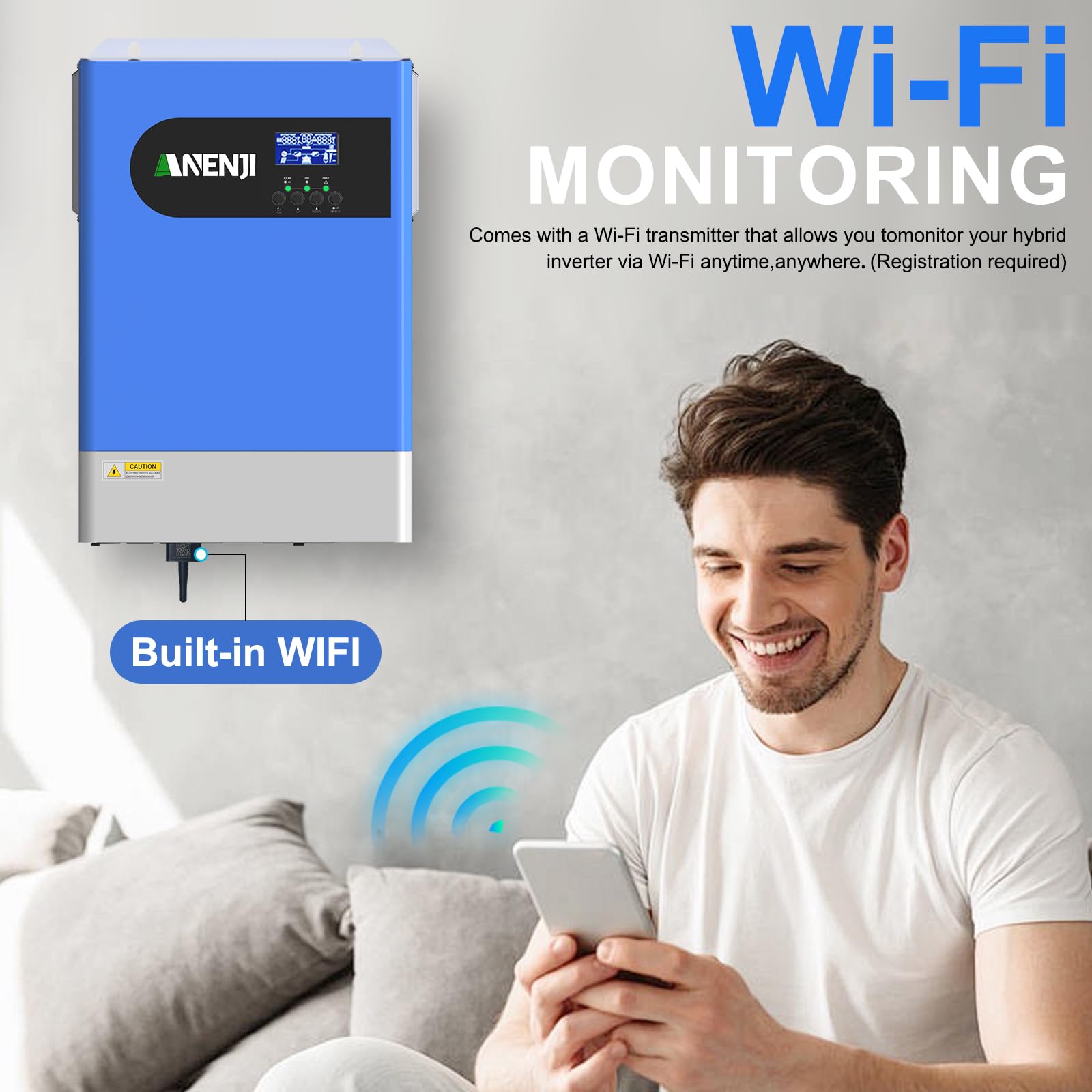 Aninerel 6200W Hybrid inverter 48V, battery-free operation, Parallel function, Max. PV 500Vdc Pure sine wave inverter 230V with 120A MPPT solar charge controller, For lithium batteries, with WiFi module