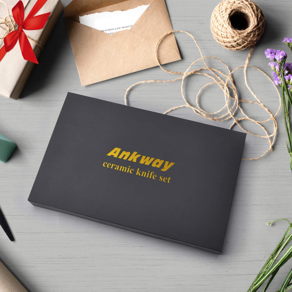 Ankway Ceramic Knife Set with Protective Cover 5 Pieces, 2023 Knife with Peeler Kitchen Knife Set Knife Cutting Knife Chef's Knife Sharp Cake Knife for Meat Fruit Vegetables, Black.