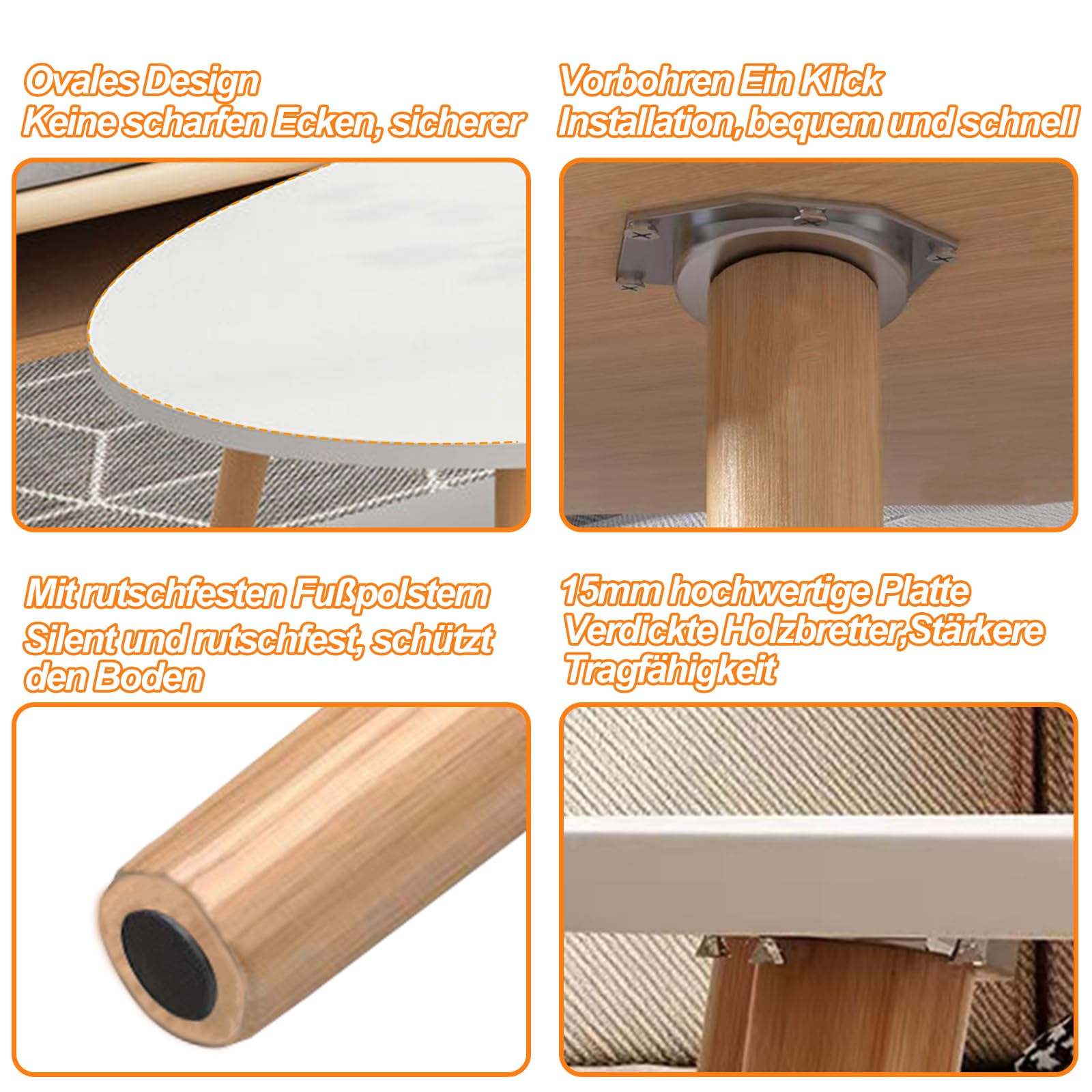 "Material: The oval coffee table is made of safe and environmentally friendly medium-density wood fibers. The wood surface, the tabletop is smooth and the surface is smooth"