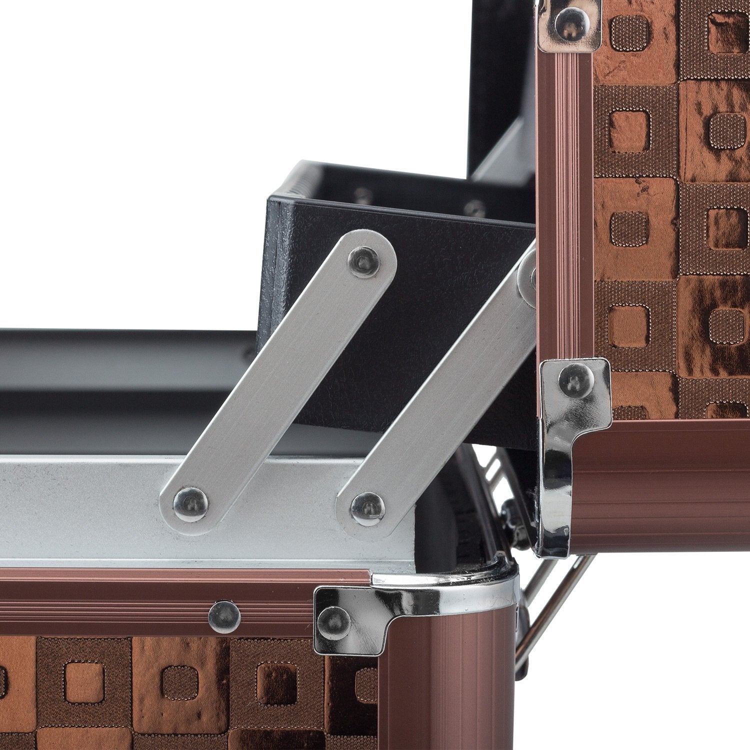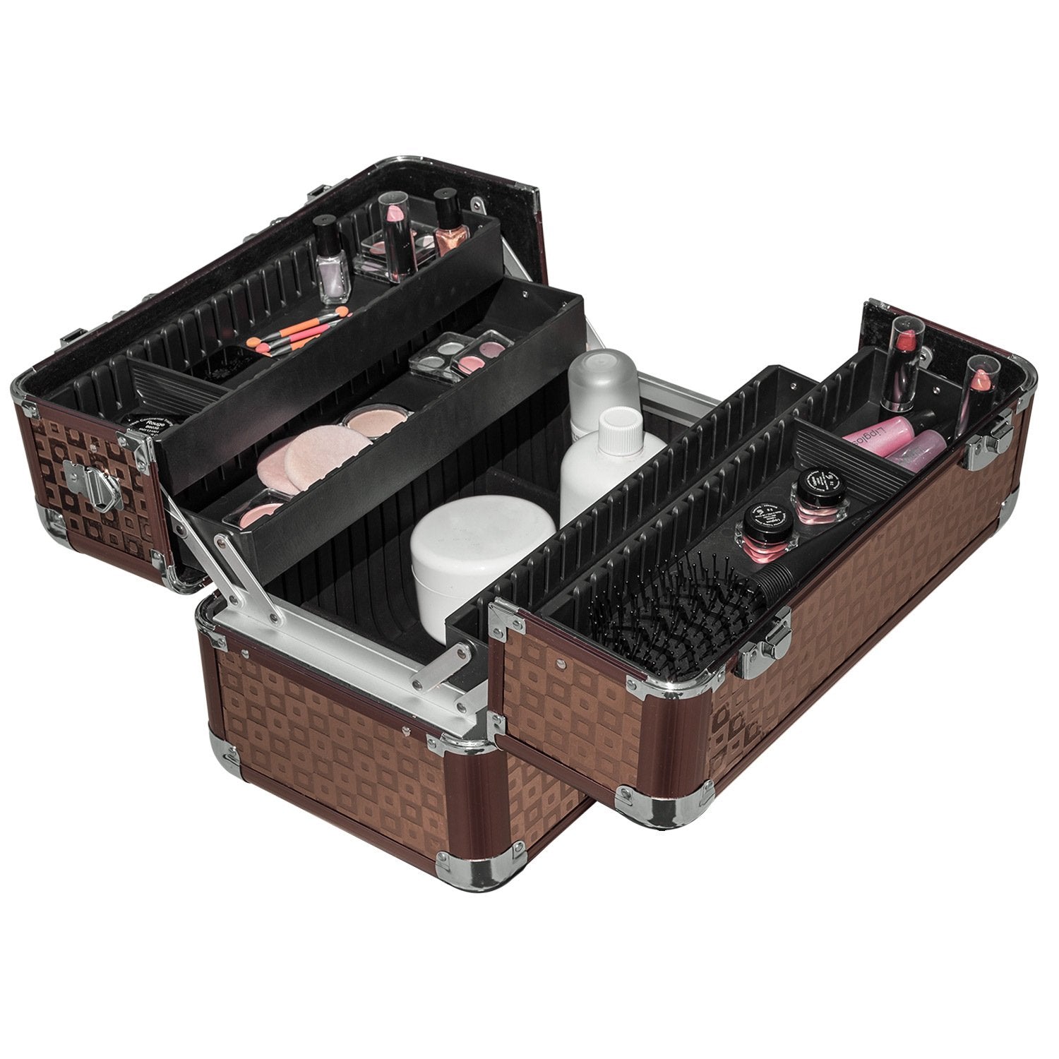 Anndora beauty case cosmetic bag - sturdy makeup case, tool case, aluminum makeup case with compartments - ideal for travel and professional use, lockable, brown