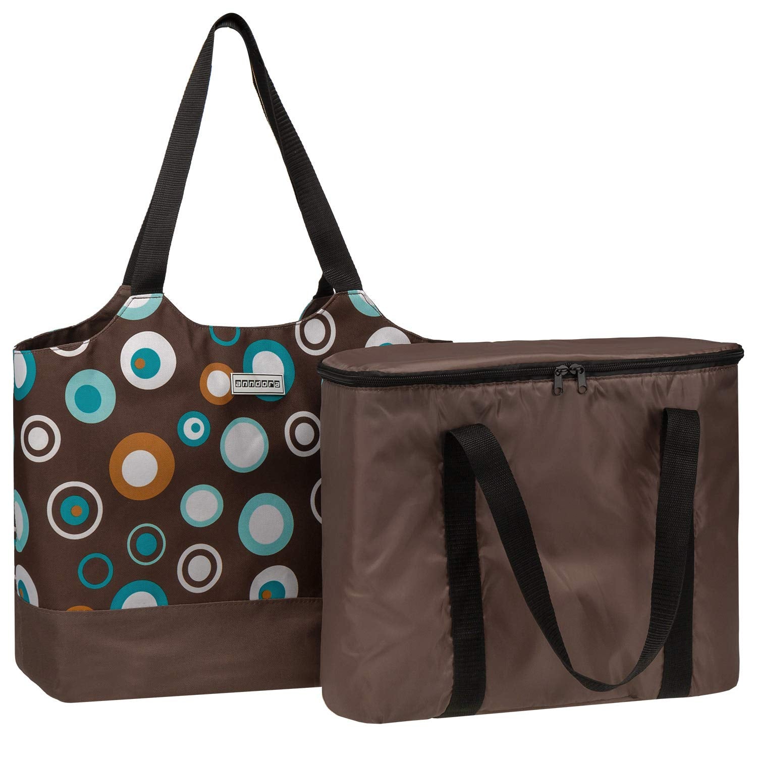 anndora shopping bag 22 liters plus cooler bag 18 liters - can be used separately - brown light blue