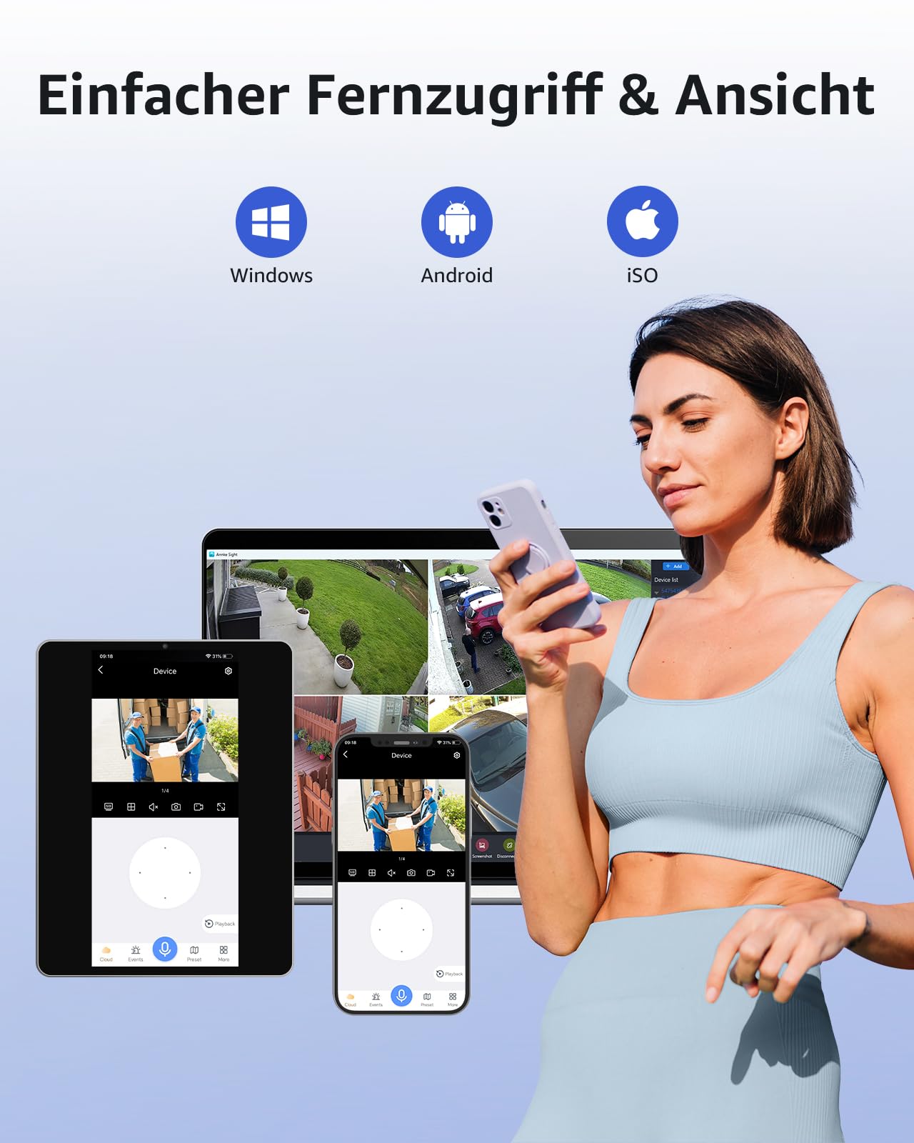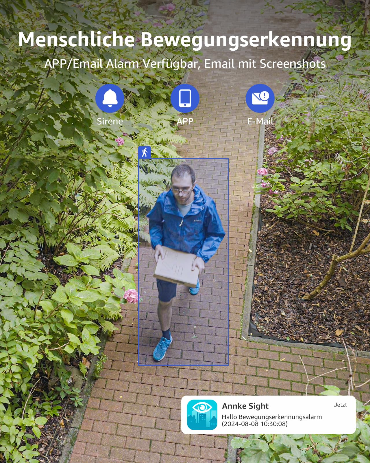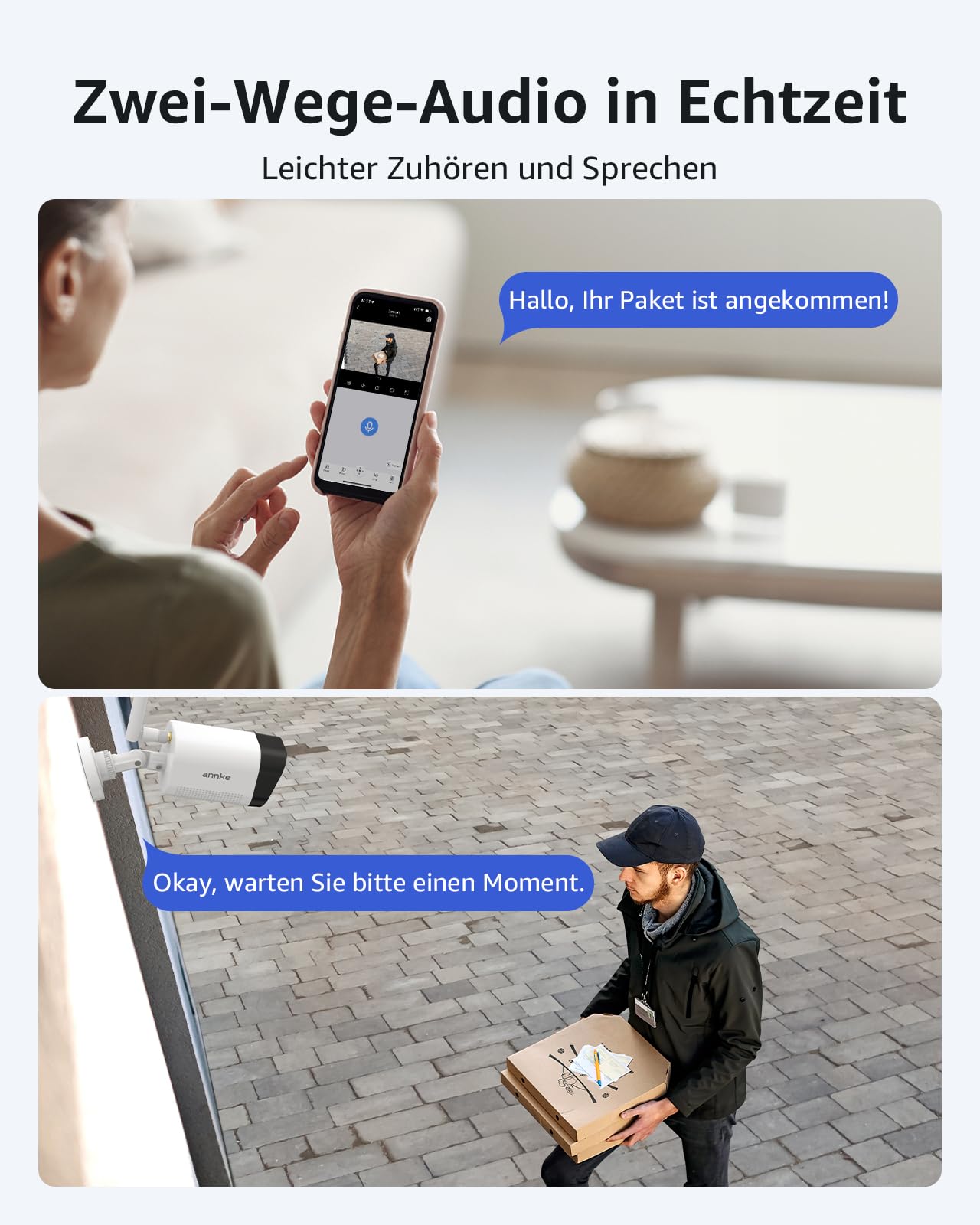 ["3MP WLAN Surveillance Camera Set: The 16 channel outdoor surveillance camera set captures ultra-clear 2K 3MP Super HD recordings and covers up to 30m night vision, almost double the clarity of 1080p security camera system.","DIY Plug & Play Setting: Simply connect the surveillance camera and NVR to the power supply. The surveillance camera set wirelessly connects automatically, without any cable clutter or installation issues.","Two-Way Audio: Our WLAN surveillance camera set features a built-in microphone and speaker, enabling two-way audio. You can speak with people in the surveillance area anytime, anywhere and never miss important moments again.","Intelligent and Precise Person Detection: The advanced AI algorithms of ANNKE's outdoor surveillance camera set can accurately detect people. If someone triggers the alarm, you will receive app push notifications and email alerts.","Better Compatibility: With ANNKE surveillance camera set, you can enjoy 100% voice control with Amazon Alexa. Give Alexa the respective voice commands to receive an instant live stream even without a smartphone."]
