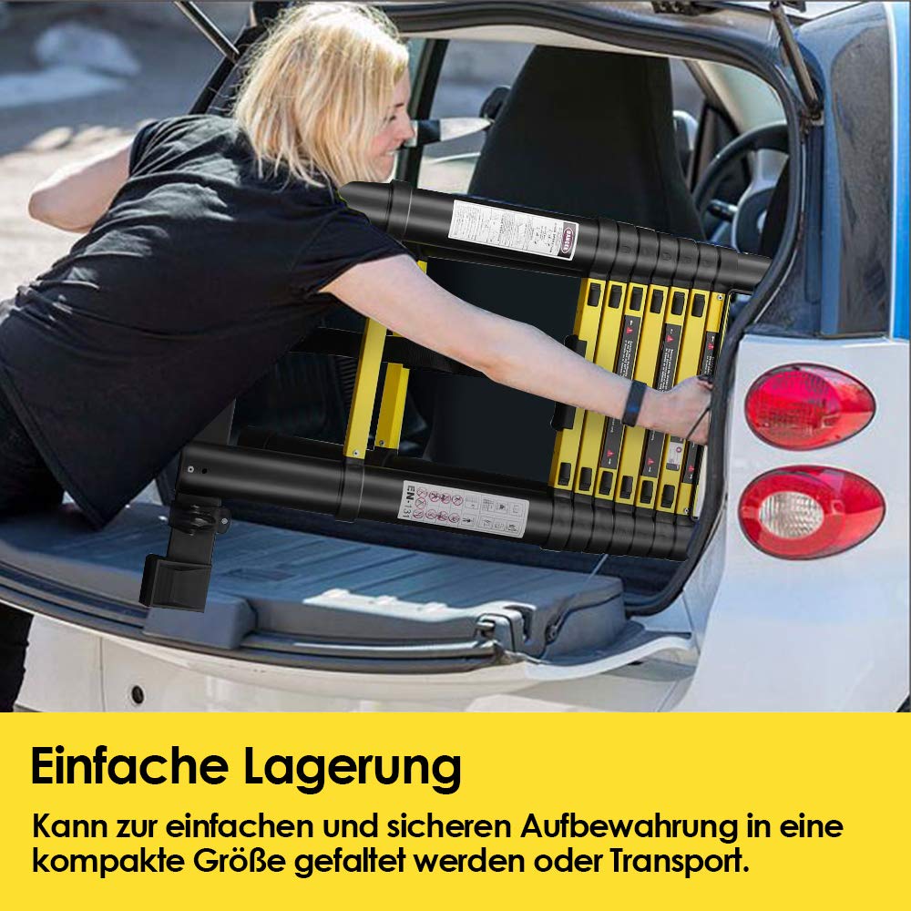 Easy to transport - This telescopic ladder saves maximum space and can be folded down to a compact size for easy storage in your car or other limited spaces.