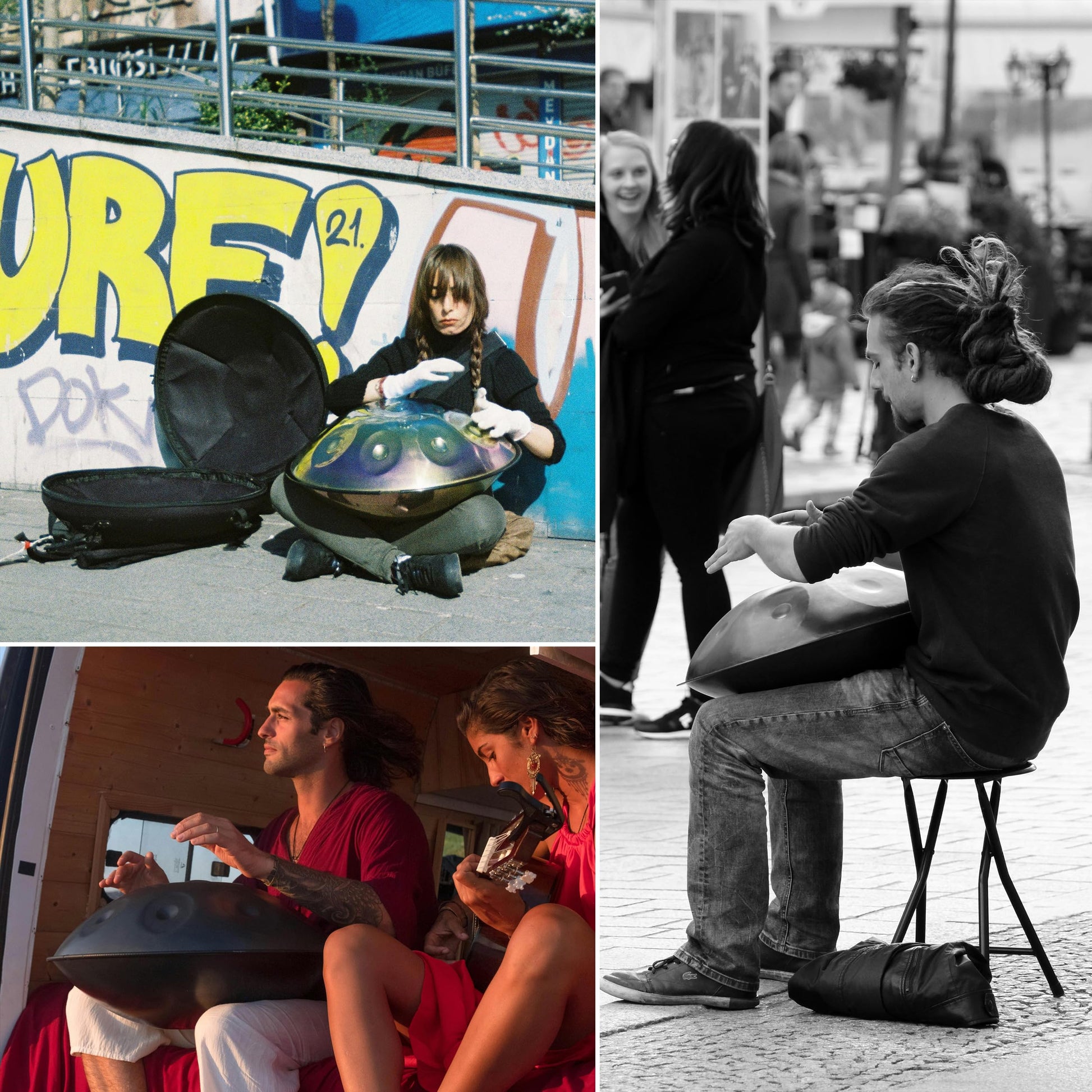 "The package includes Handpan, drum bag, drumsticks and stand, and cleaning cloth. Perfect for beginners and professionals. Suitable for playing in street performances, festivals, gatherings."]