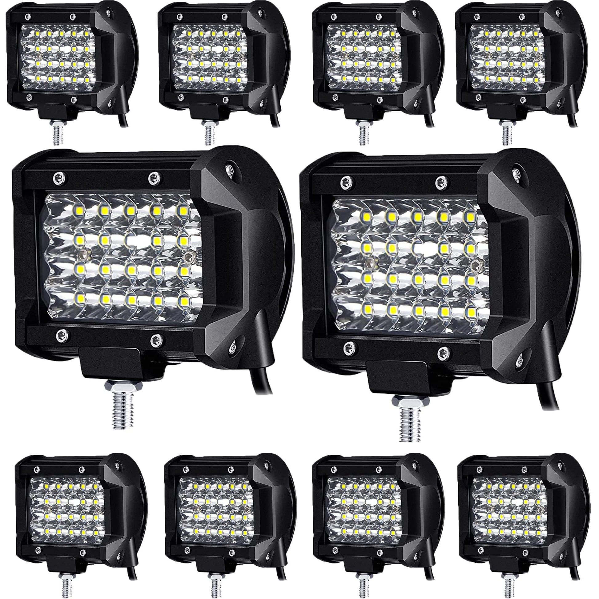 antom 10PCS LED work light 72W LED spotlight 12v tractor 21600LM 9-36V 6000K reverse light Waterproof IP68 for tractor, SUV, UTV, ATV