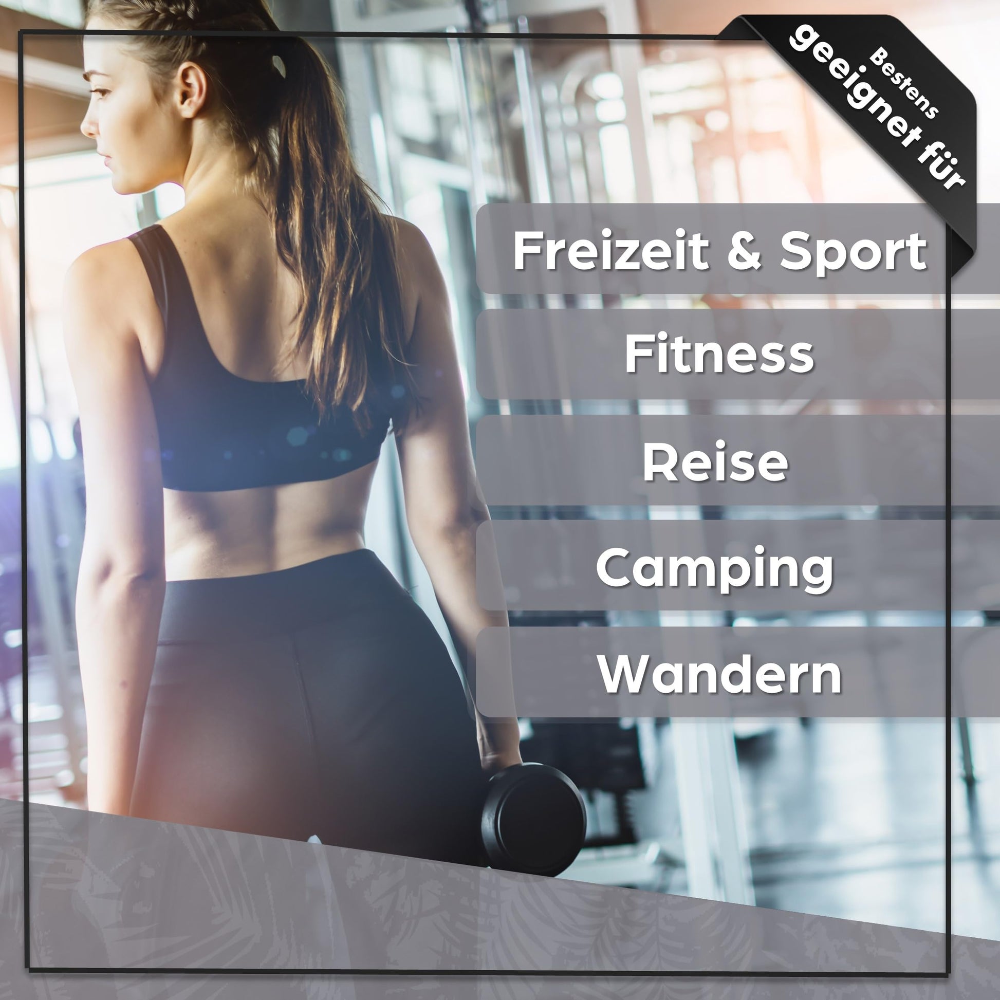 "🌫 EASY CARE - The sports and fitness towel can be machine washed up to 30°. We recommend washing the sports towel separately for the first wash. Subsequent washes can be done with similar colors. The smooth surface without terry structure makes the towels super lightweight and easy to keep sand-free by shaking."