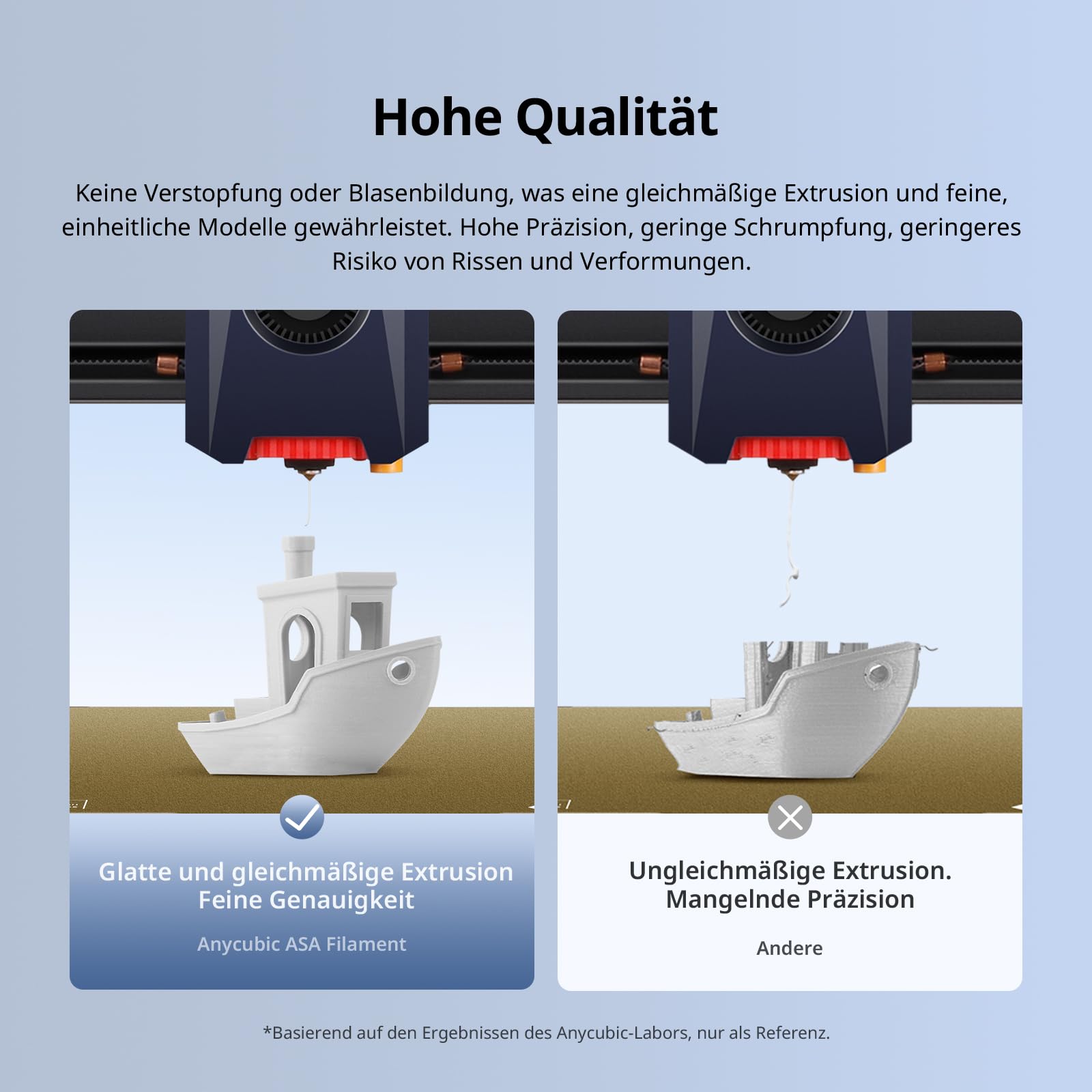 "Excellent mechanical properties: Models printed with Anycubic ASA Filament can withstand moderate impacts without deforming or breaking"