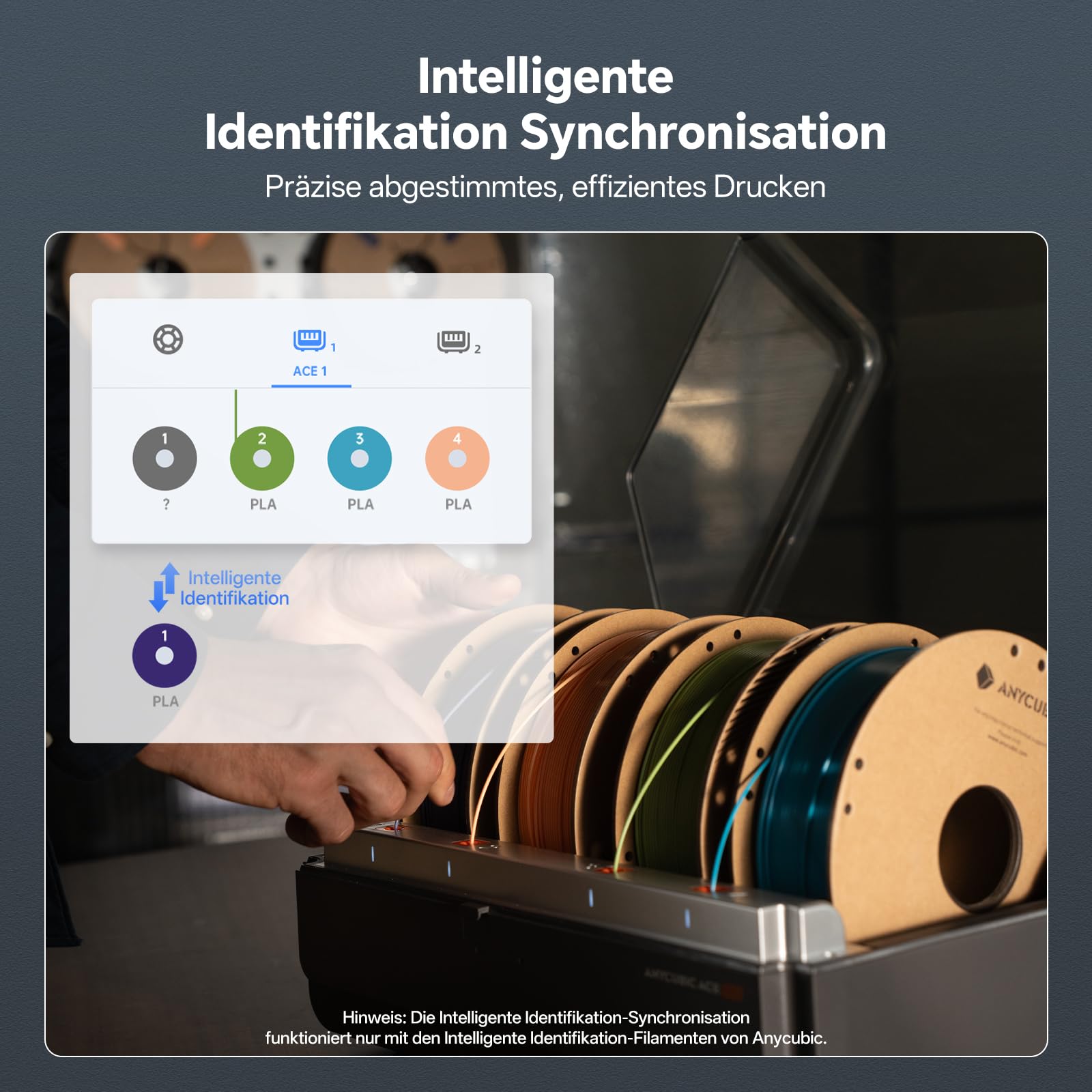 "RFID-Sync: Works with Anycubic RFID filaments. The Anycubic Color Engine Pro fully utilizes each filament spool, automatically switching to the next spool of the same color and material, effectively enhancing print efficiency."