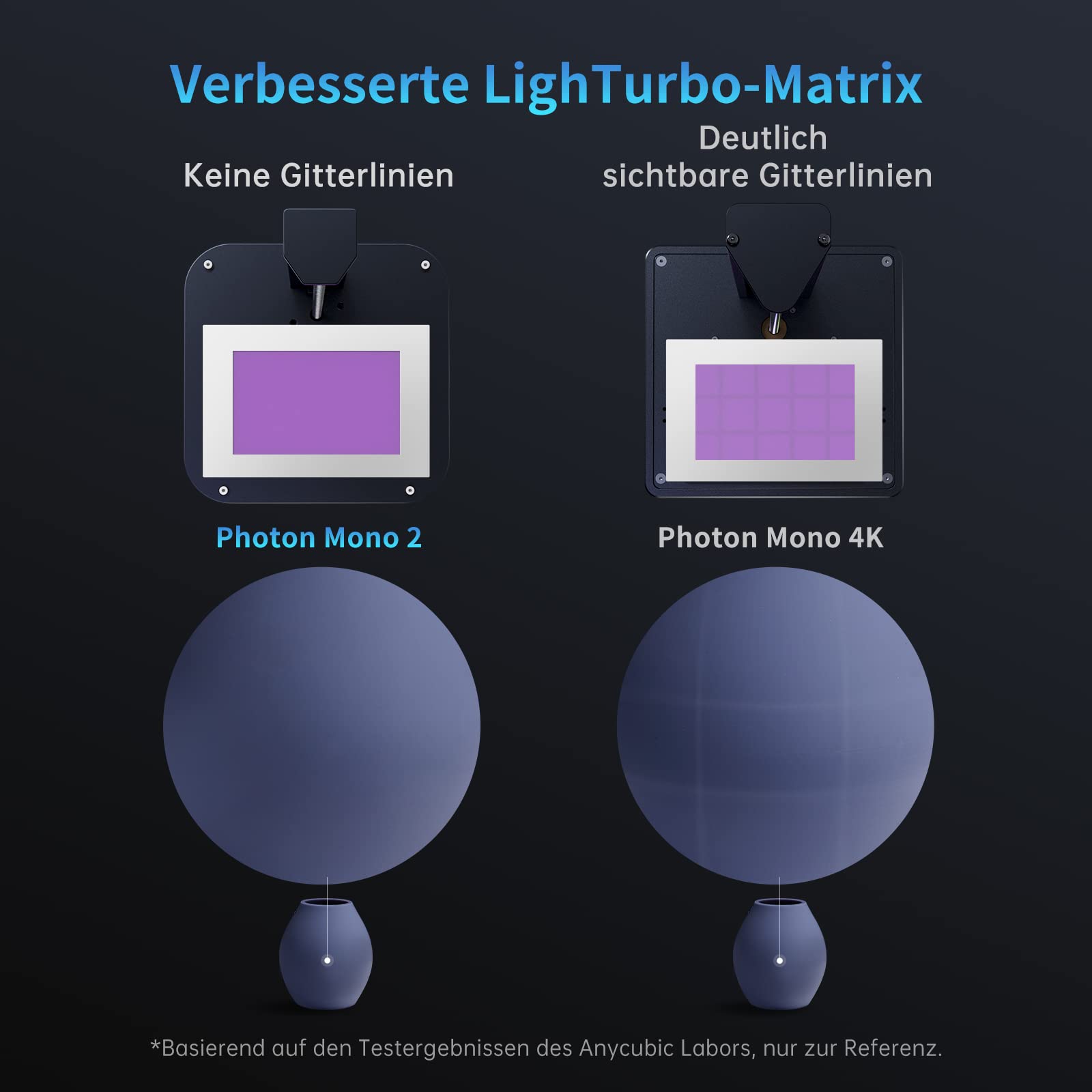 "【Improved Light Source】 The LighTurbo Matrix light source enhances printing accuracy and reduces optical layer patterns and grid lines to achieve finer and smoother results. The light intensity of the light source can reach up to 4200 μw/cm², with exposure times shortened to 1.5s-3s.",