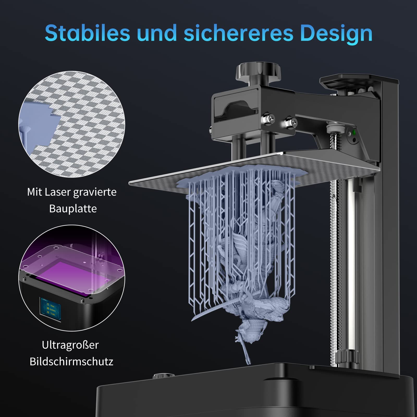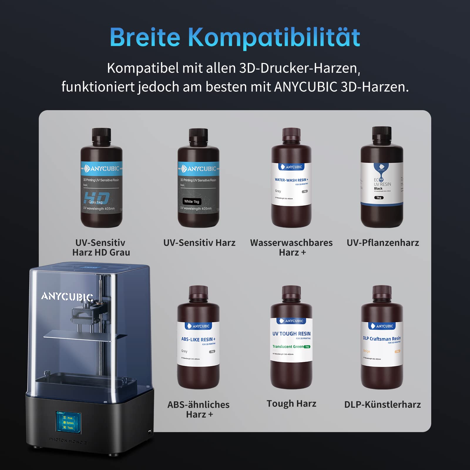 ["【High Resolution 4K+ Screen】 The resin 3d printer with a 6.6-inch monochrome LCD screen and an impressive 4K+ resolution (4096x2560) is ready for your most demanding projects with the Photon Mono 2. The included screen protector protects against scratches and resin penetration, increasing light transmittance by up to 95%.",