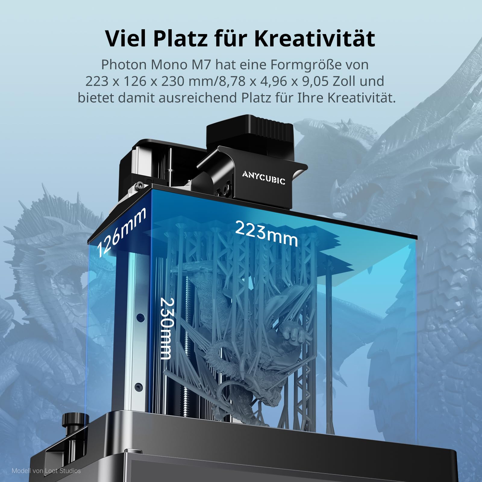 ANYCUBIC Photon Mono M7 14K 3D printer, 10.1-inch mono LCD with COB light source 3.0, 150 mm/h fast printing, intelligent error detection, leveling-free, print size 223x126x230 mm.
