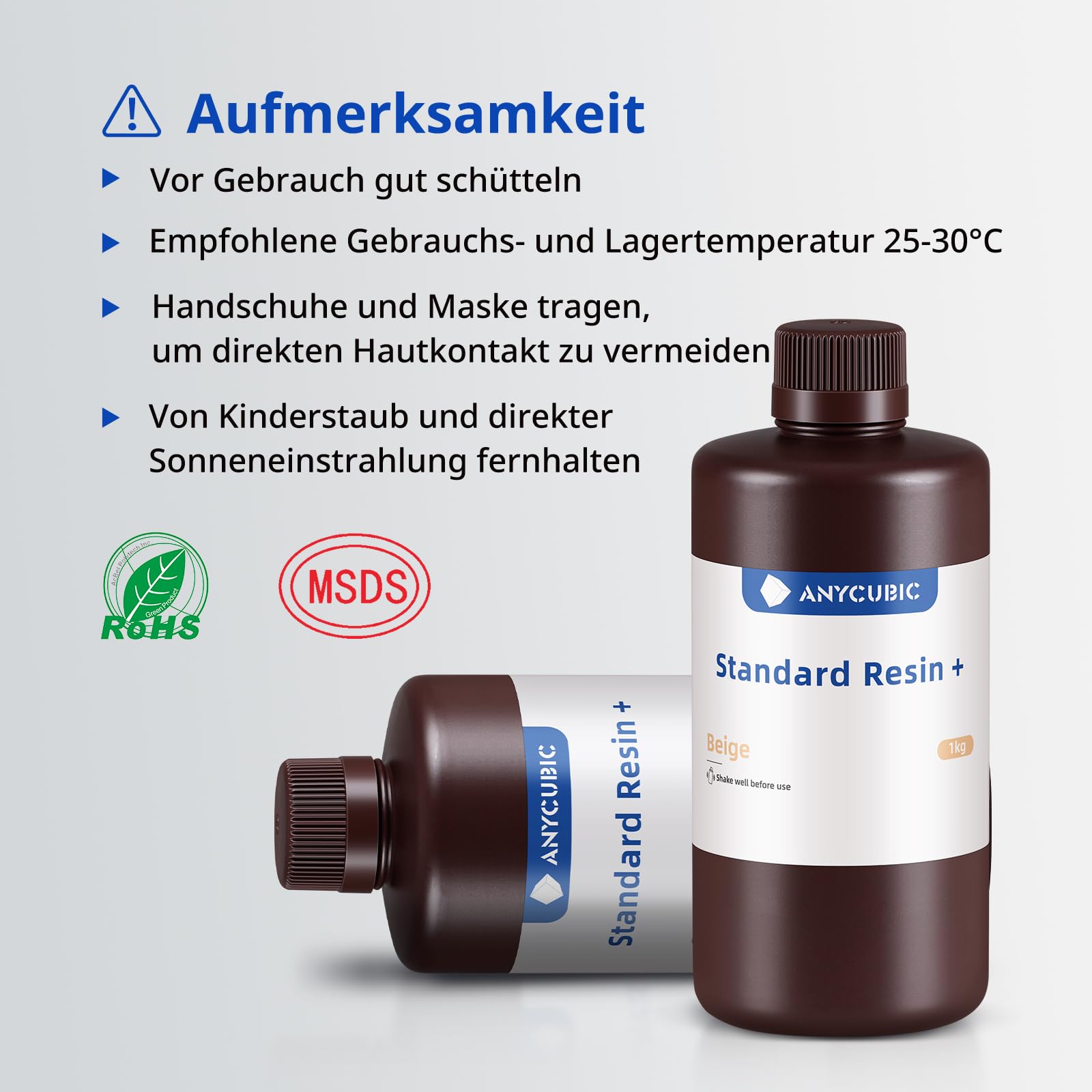 ANYCUBIC Standard Resin Plus 1000g, 3D printer resin, 405nm LCD SLA rapid UV curing resin, high precision and fast photopolymer resin for LCD/DLP/SLA 3D printing, Beige