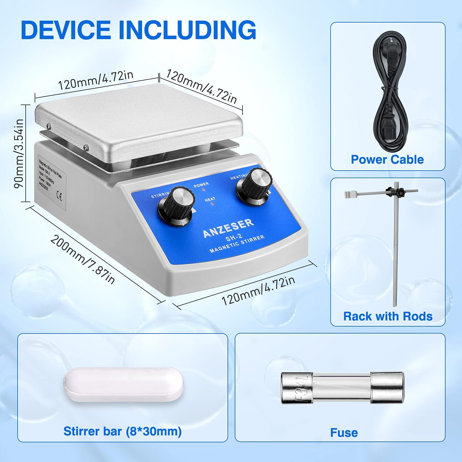 ANZESER Magnetic Stirrer Heating Plate 120x120mm 380°C for simultaneous mixing, stirring, and heating with EU plug, PTFE (Polytetrafluoroethylene), Aluminum