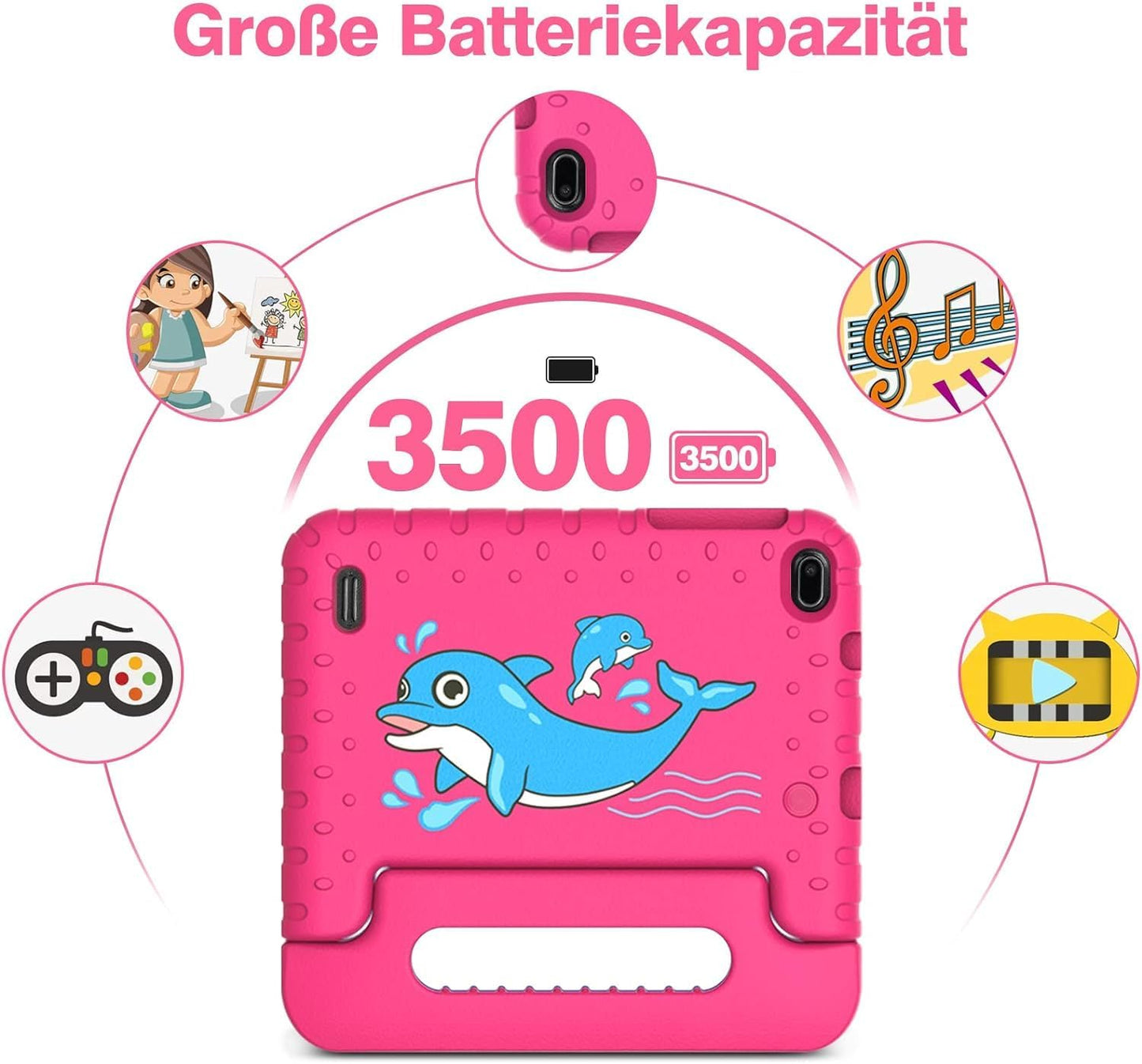 ["【Android 13-System】: Tablet with a high-performance Quad-Core processor and Android 13 OS, 7 GB RAM and 64 GB ROM is updated to be 60% faster. It features a 1024 x 600 IPS HD display, WiFi, and Bluetooth 5.0.","【IWAWA APPS】: The tablet comes with iWawa apps, including many free apps/games - designed to provide innovative digital learning content for children aged 2 to 12. Learning about animals, fruits, typing, ABC mouse, drawing. Many contents waiting to be explored, games, educational, entertainment contents, useful tools (alarm clock, camera, calculator, browser), video resources (shows, learning, music, stories).","【Protection Features】: 7-inch tablet has protection features. Parents can set up separate profiles for each, limit screen time through the iWawa app, lock the tablet for the device, and manage playtime. So they can watch, learn, play movies, play games, and listen to music.","【High-End Configuration】: 7-inch High-Definition IPS screen with Low-Blue-Light technology always protects the eyes and provides a high-quality visual experience; 3500mAh hybrid battery can play videos continuously for 3-4 hours and standby for 7 hours.","【EVA Protective Case】: The tablet cover is made of EVA material. The shock-absorbing, lightweight silicone case helps prevent damage in case of a fall or impact."]