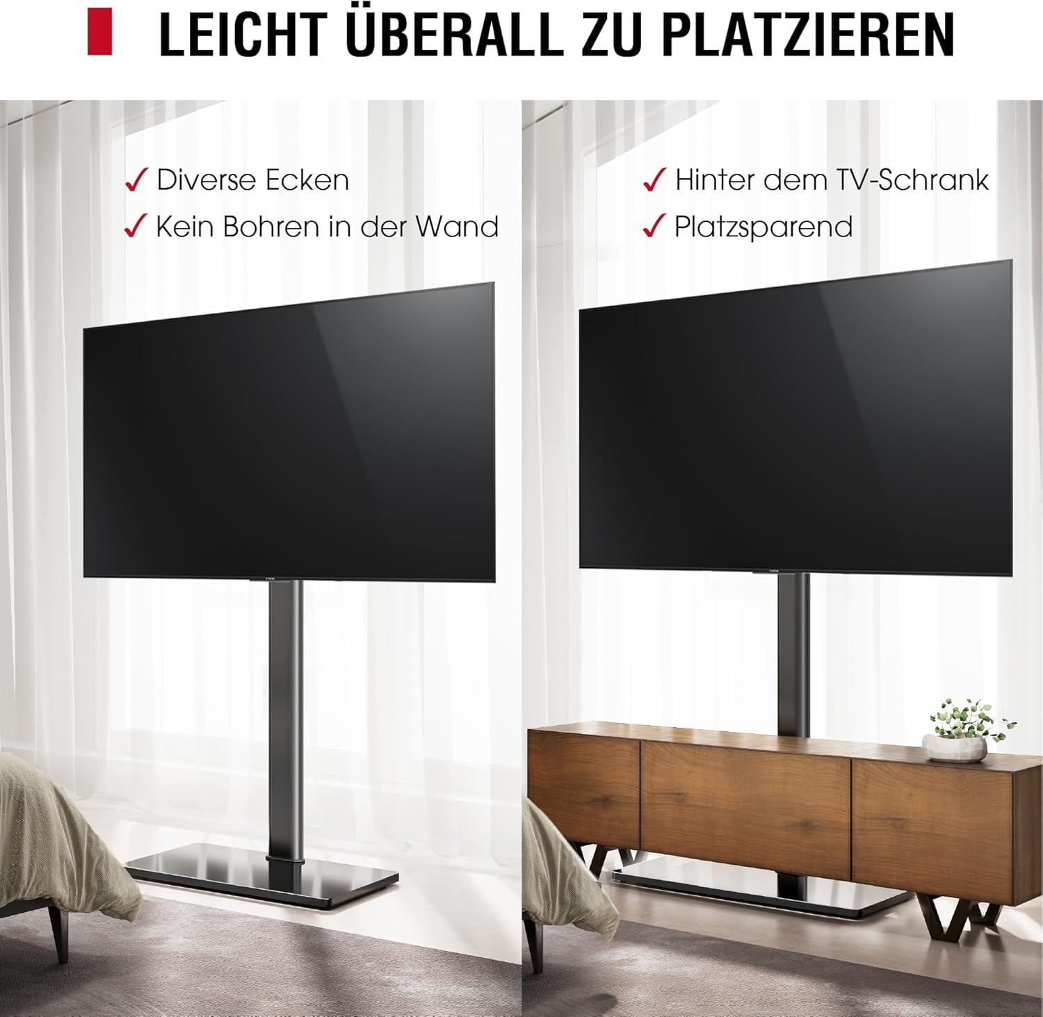 ["Higher 61.2 inches Adjustable】The greater height not only provides the best viewing angle but also is suitable for a wider range of scenarios.【Thicker 3.9-inch Tube & Larger 23.6-inch Base】3.9-inch tubes and larger bases provide more stability and are better for larger TVs.【12° Tilt without Removing TV】The tilt can be adjusted by tightening the screws on the back with the included tool.【Swivel & More Stable Bracket】Swivel bracket with 16 mounting holes and 4 metal safety locks to securely fix the TV.【Universal With Various Screws】For 42 43 47 50 55 60 65 70 75 80 85 inch flat & curved TVs up to 110 lbs. VESA Hole: 100x100 - 600x400 mm.【Lockable Cable Clamp & Easy Installation】2 improved cable clamps that hold more and thicker cables. Instructions and tools are included."]