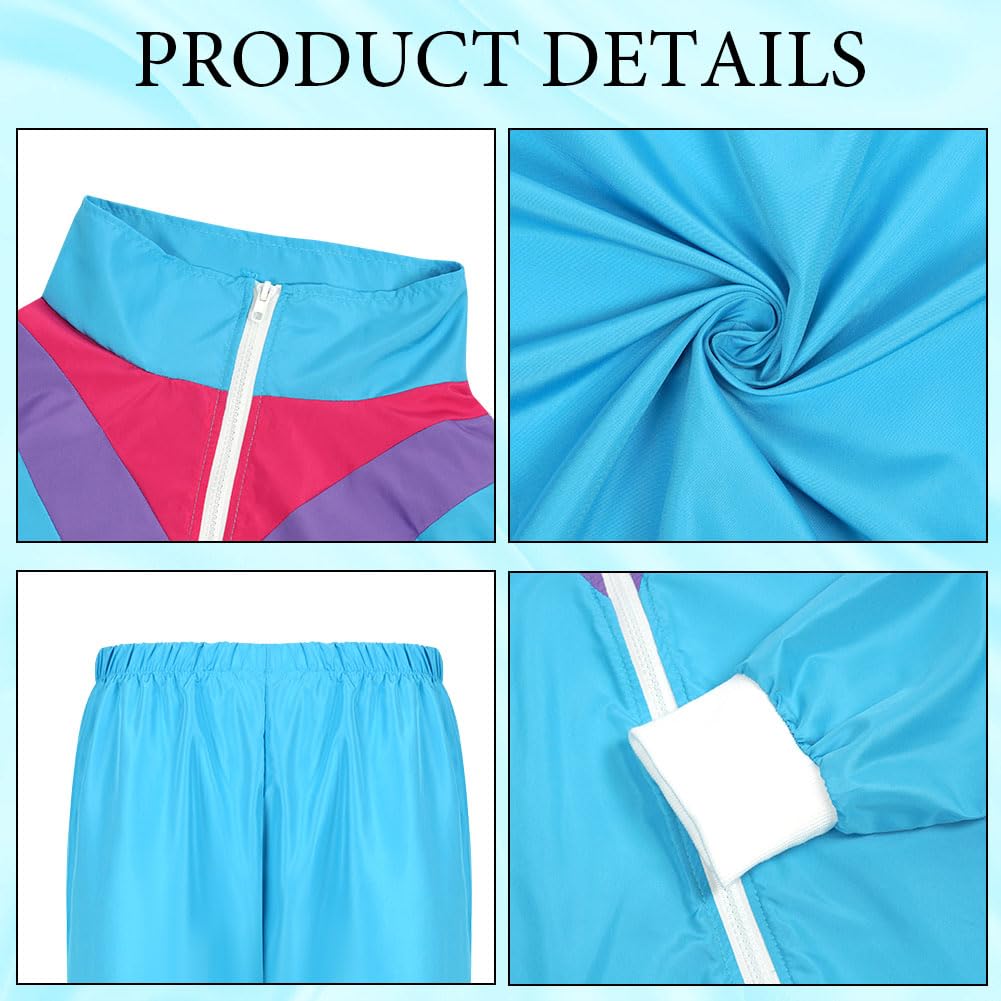 Aomig 90s 80s Costume Adults, Retro Tracksuit for Men Women, Disco Jumpsuit, Matching Outfit Jacket and Pants 80s Party Bad Taste for Theme Party Carnival (Blue-XL)