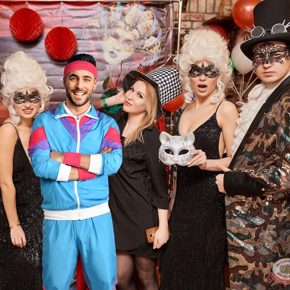 ["✅【Package Includes】This adult group costume in 80s style includes 1 top, 1 pants, 2 * bracelets, and 1 * headband. This is a very comprehensive clothing set that will make you stand out from the crowd.","✅【Unisex Retro Style Design】This 80s adult costume set is not only suitable for men, but also perfect for women. They are the perfect 80s adult couple costume. This rave party outfit features a casual retro design that will make you look cool and stylish.","✅【High-Quality Material】Retro clothing is made of high-quality material that is elastic and shiny, comfortable to wear, does not irritate the skin, and the material is very soft. All parts are cleanly sewn. Shimmery period clothing for men and women is perfect for stage performances and party wear, shining even more brightly under the lights.","✅【Multiple Sizes】: This 90s 80s adult outfit for men and women is available in 3 sizes: M, L, XL. The sizes for men and women are the same. Therefore, carefully compare the size chart with your own measurements before purchasing to select the right size.","✅【Suitable for Many Occasions】: This 80s adult costume is perfect for retro-themed parties, like 80s/90s parties, Halloween parties, hippie disco parties, Easter costumes, cosplay, etc. It is also suitable for daily wear, running, fitness, etc. Bring your friends back to the dreamy 80s, it will make you more attractive and fashionable in the crowd."]