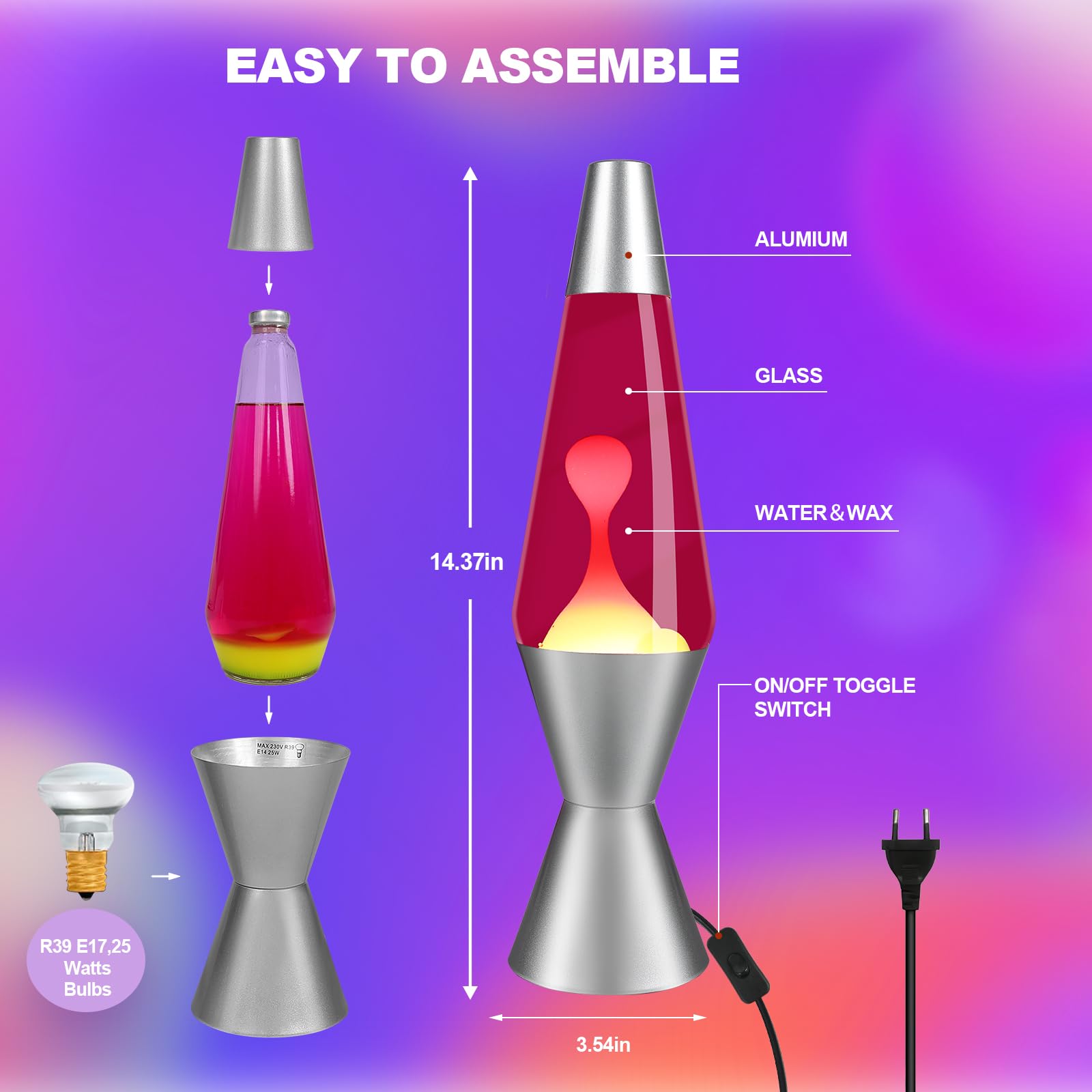 Assembly is easy, simply screw in the bulb, place the bottle over it, add the cone, and you're good to go. Lava lamps for adults and children. Please keep it away from children under three years old."