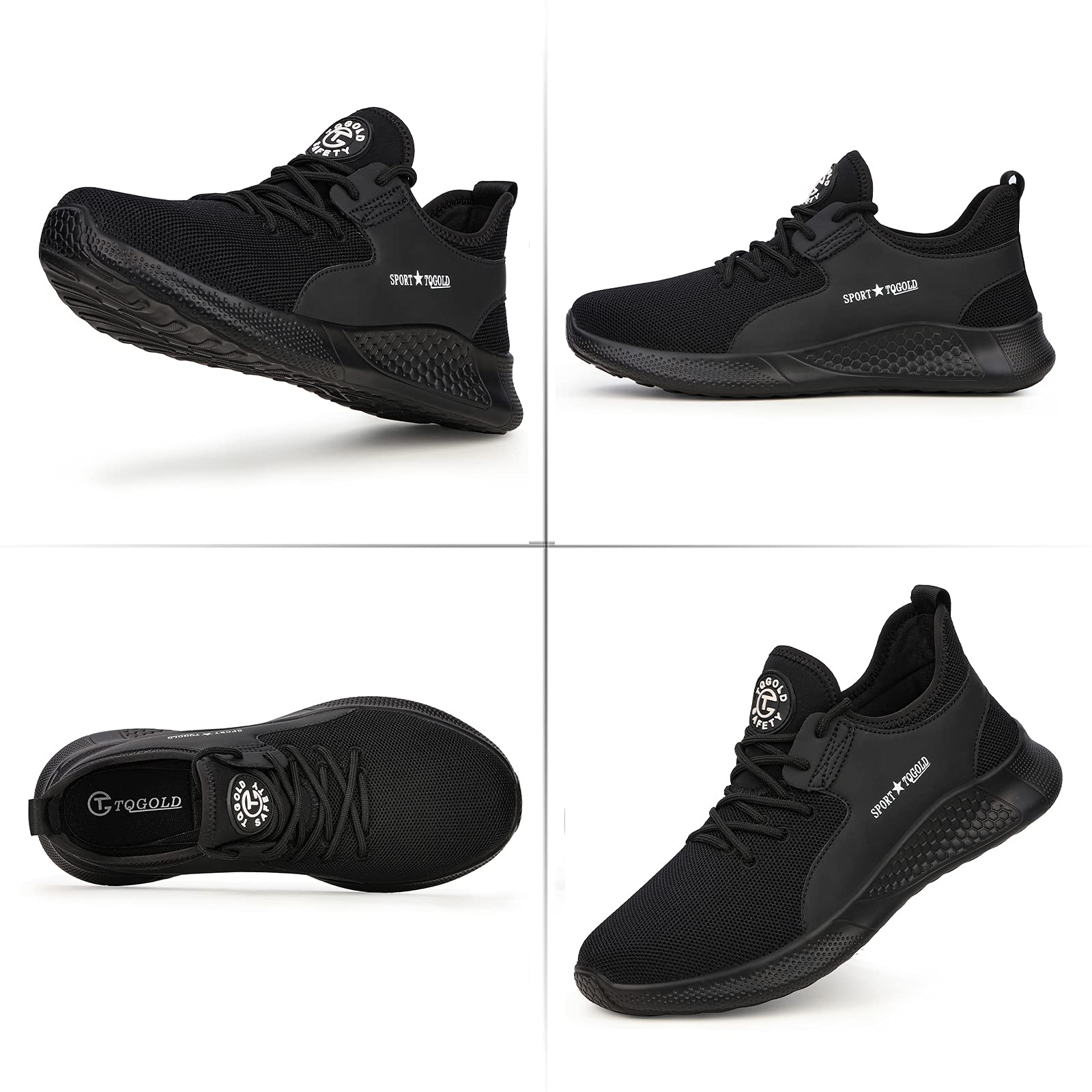AONETIGER safety shoes for men and women. Lightweight work shoes with steel toe. Breathable, anti-slip sports protective shoes. Sneakers in size 40, black.