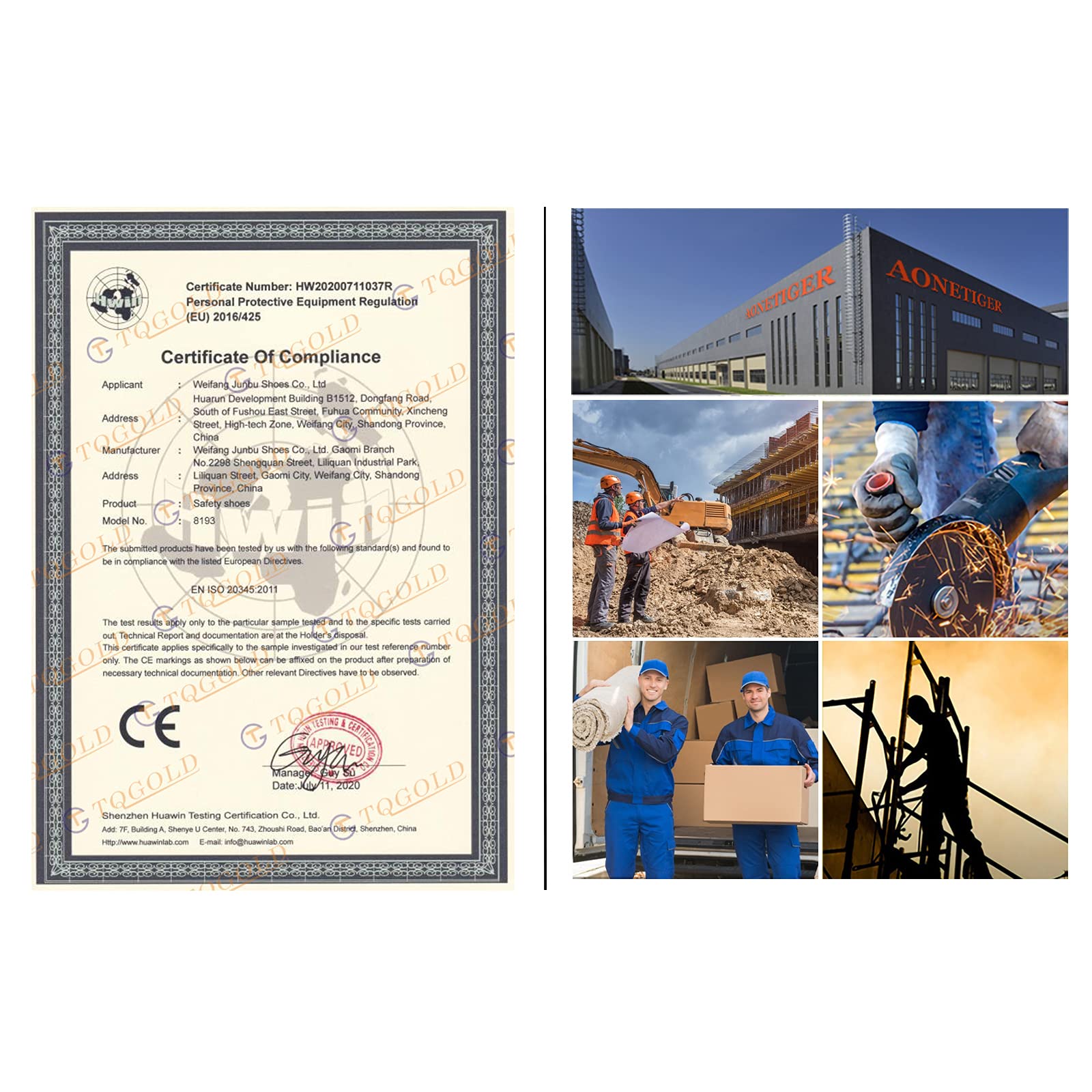 ["【ANTI-SMASHING】- The shoe toe is made of European standard steel, effectively withstands a pressure of 15,000N and 200J, preventing foot injuries.","【PUNCTURE RESISTANCE】- These work shoes feature a lightweight Kevlar midsole that withstands a puncture force of 1100N, protecting your feet from nails and other sharp objects.","【CUSHIONING AND SHOCK ABSORPTION】- The sole of these safety shoes is made of lightweight, durable rubber and features an air cushion in the heel area for good cushioning, reducing vibrations and providing comfortable cushioning while walking.","【GOOD BREATHABILITY】- The upper material of these AONETIGER steel toe shoes is made of breathable material that conforms to the shape of the foot and allows air to circulate in the shoe, keeping your feet dry.","【APPLICATION SCENARIOS】- Our safety shoes are unisex and ideal for hiking, industry, construction, work, outdoor sports, warehousing, distribution, etc."]