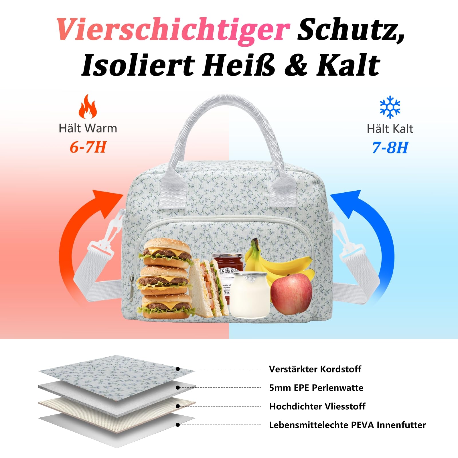 ["Long-lasting Insulation & Freshness"]Outer reinforced, abrasion-resistant fabric - inside a thick foam insulation layer. Double cold and heat insulation for long temperature retention: cold drinks stay cool without melting, hot food retains its temperature without cooling down. Whether cold drinks or hot meals - everything stays fresher longer!