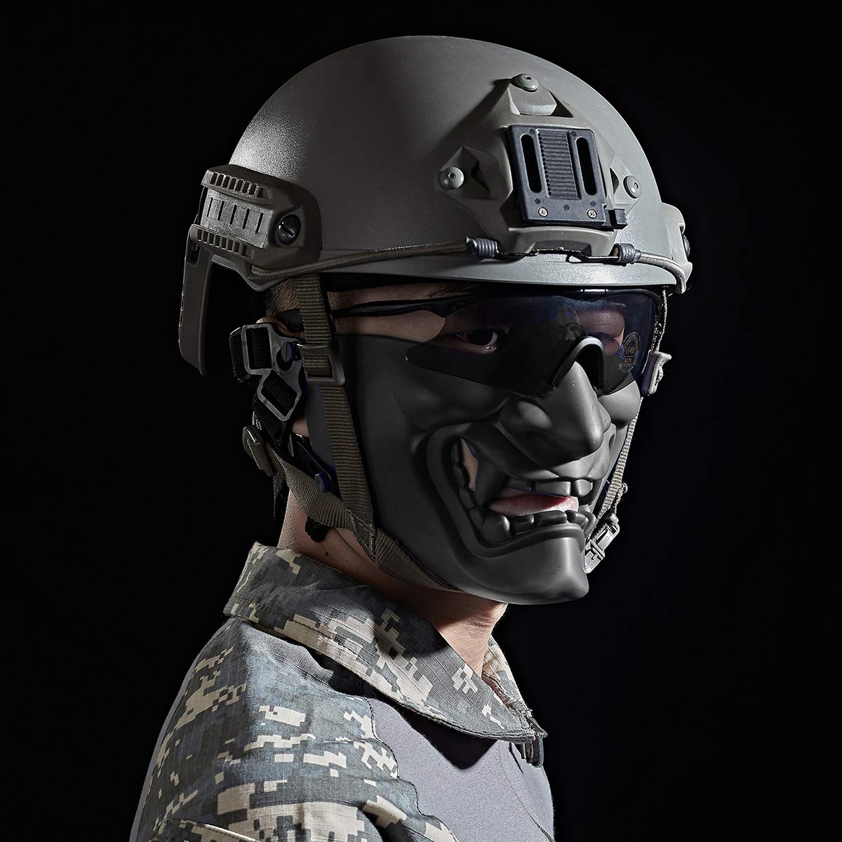 AOUTACC Airsoft Half Face Masks, Evil Demon Monster Kabuki Samurai Hannya Oni Half Face Protective Masks Masquerade Ball, Party, Halloween, Cs War Game (Adjustable Strap Black)