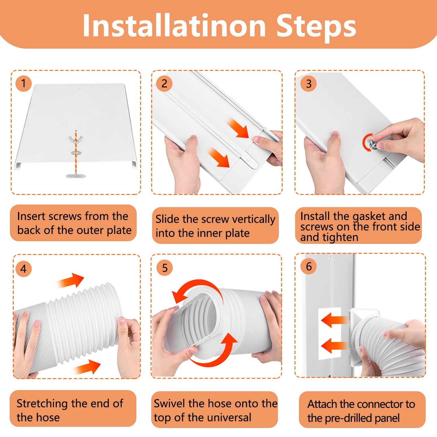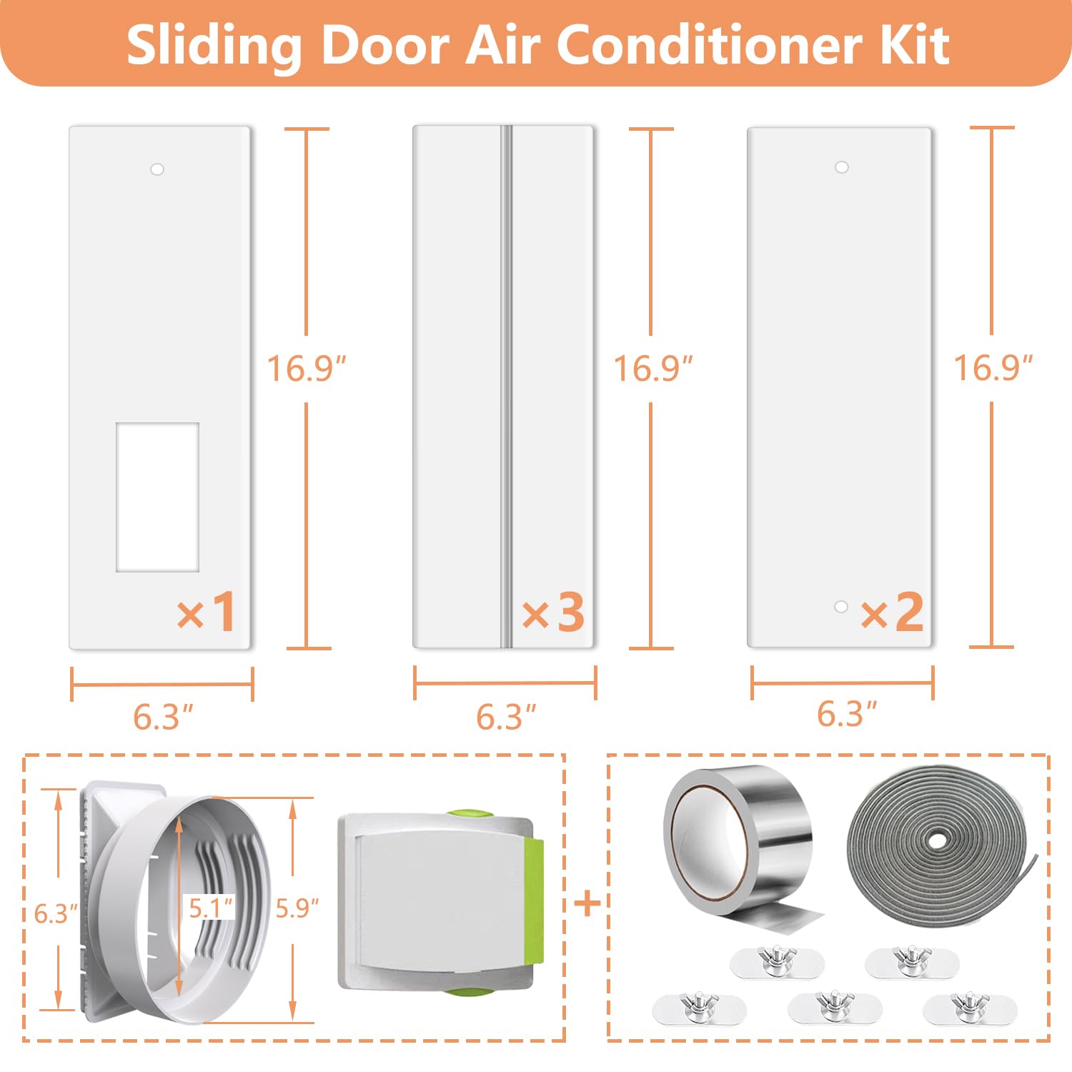 "Comprehensive Upgrade: The most comprehensive portable air conditioner sliding door ventilation kit solution on the market is here! Our kit includes carefully combined components - 6 sliding panels (each 17 inches, total length 94 inches), 1 universal air conditioner hose adapter, 1 air conditioner hose (6 inches in diameter), 1 sliding door security lock, 2 sealing strips, locking nuts, and a user manual. It is the best cost-effective alternative to original accessories.