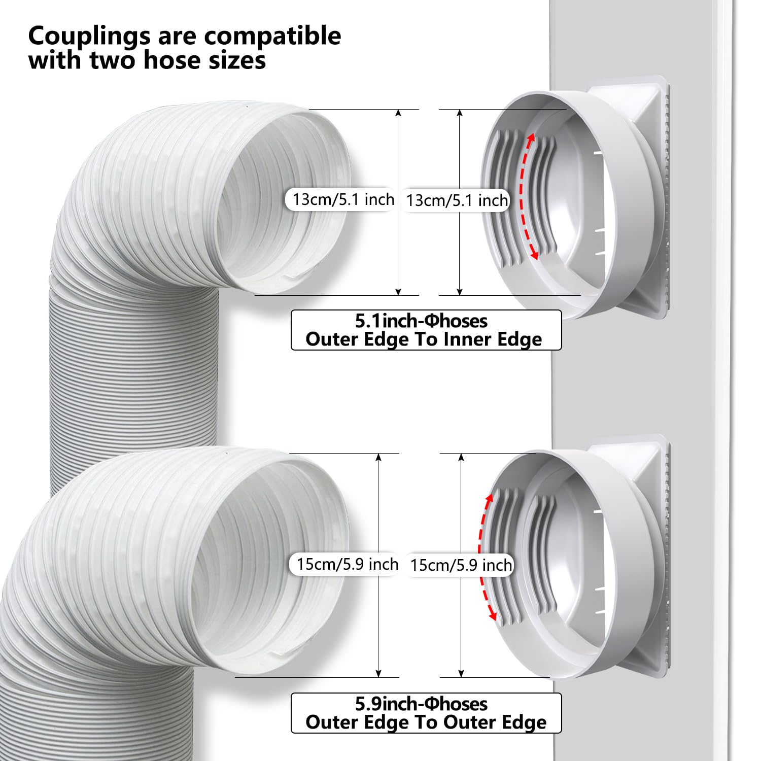 Universal Adapter Design: With dual connection for 5.1 inches and 6 inches exhaust pipes - unlike single-size adapter. Connects seamlessly to most portable air conditioners, regardless of left or right threads. Reduces returns due to size incompatibility. Note: Patented technology, exclusively compatible with Aozzy sliding door kits.