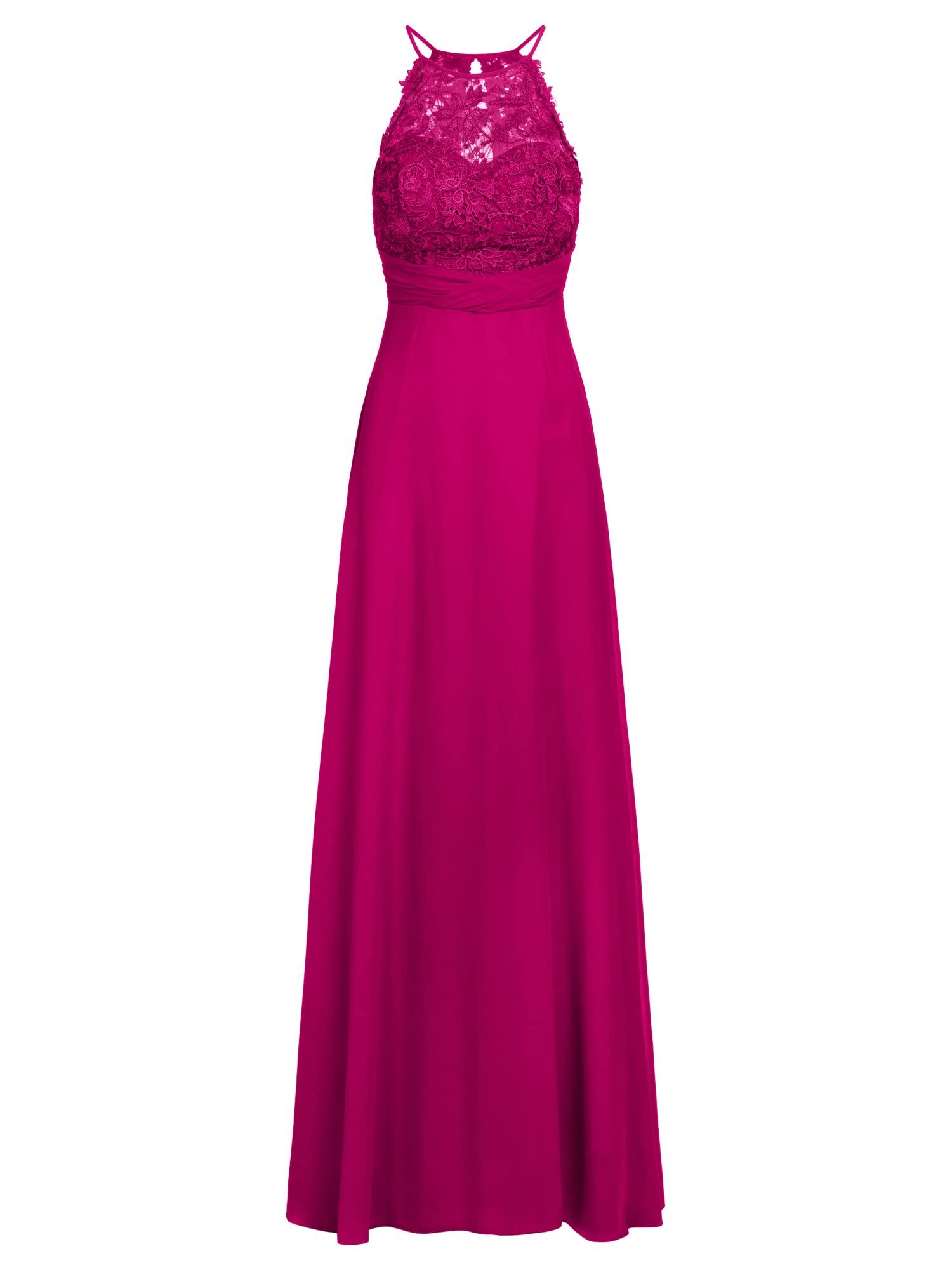 APART Fashion evening gown in chiffon and lace, fuchsia, L