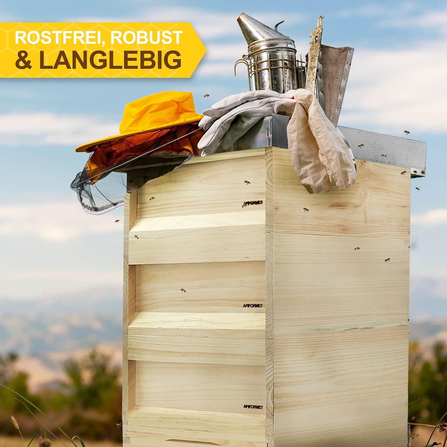 "DAS BESTE FÜR DEINE BIENEN: Our company specializes in the production and sale of beekeeping supplies. It is very important to us that your bees feel comfortable in their environment, so you will receive a hive from us that is of high quality and has been made with a lot of love and care. The DNM hive is made from untreated Weymouth pine (20mm), glued and screwed for reliable stability.