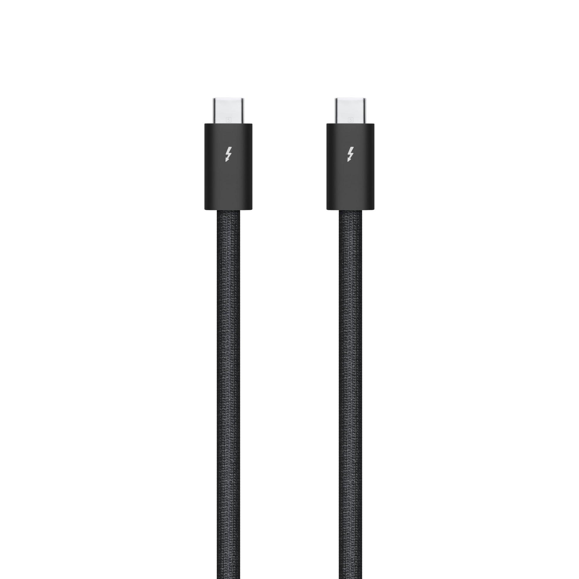 "This 3.28 foot long cable with a black woven design does not tangle and supports Thunderbolt 5 data transfers up to 120 Gbit/s; Thunderbolt 3, Thunderbolt 4, and USB 4 data transfers up to 40 Gbit/s, USB 3 data transfers up to 10 Gbit/s, DisplayPort 2.1 video output, and charging up to 240 W. Use this cable to connect a Mac with Thunderbolt 3, 4, or 5 (USB-C) ports to Thunderbolt (USB-C) and USB displays and devices like the Studio Display, Pro Display XDR, docks, and external hard drives. You can also connect iPhone and iPad models with USB-C to your Mac with this cable."