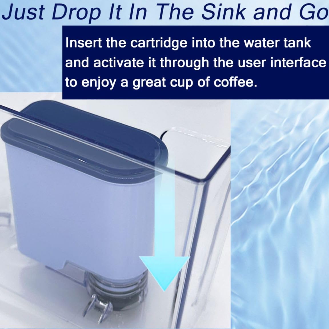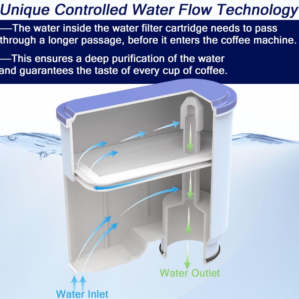 ["Water filter cartridge: The water in the filter cartridge passes through a long channel before reaching the coffee machine. This ensures that the water is thoroughly cleaned to guarantee the taste of each cup of coffee.",