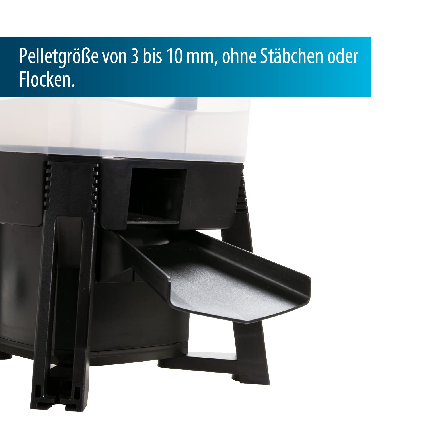 ["Adjustable Feeding Times 1 - 6 feeding times per day, with a maximum feeding time of up to 20 seconds","Solar Panel The practical solar panel automatically charges the internal battery, so you can most of the time","Elevation Option The fish feeder is equipped with ground spikes to elevate it, especially useful if your pond has a higher edge","Adjustable Dispense It's easy to choose how much feed the fish feeder should dispense, the dispensing range is adjustable from ± 1, 2, or 3 m","Pellet Size 3-10 mm The feeder is suitable for pellet sizes between 3 and 10 mm without flakes or sticks","Tipitopi"]