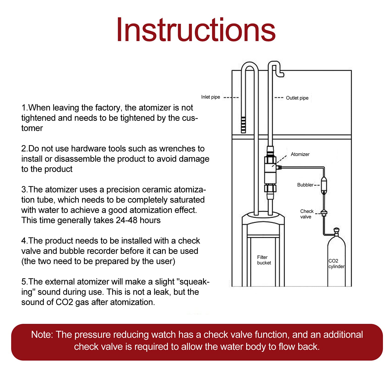 "【Please note】The external atomizer emits a slight 'squeaking' sound during use. This is not a leak, but the sound of CO2 gas after atomization."]