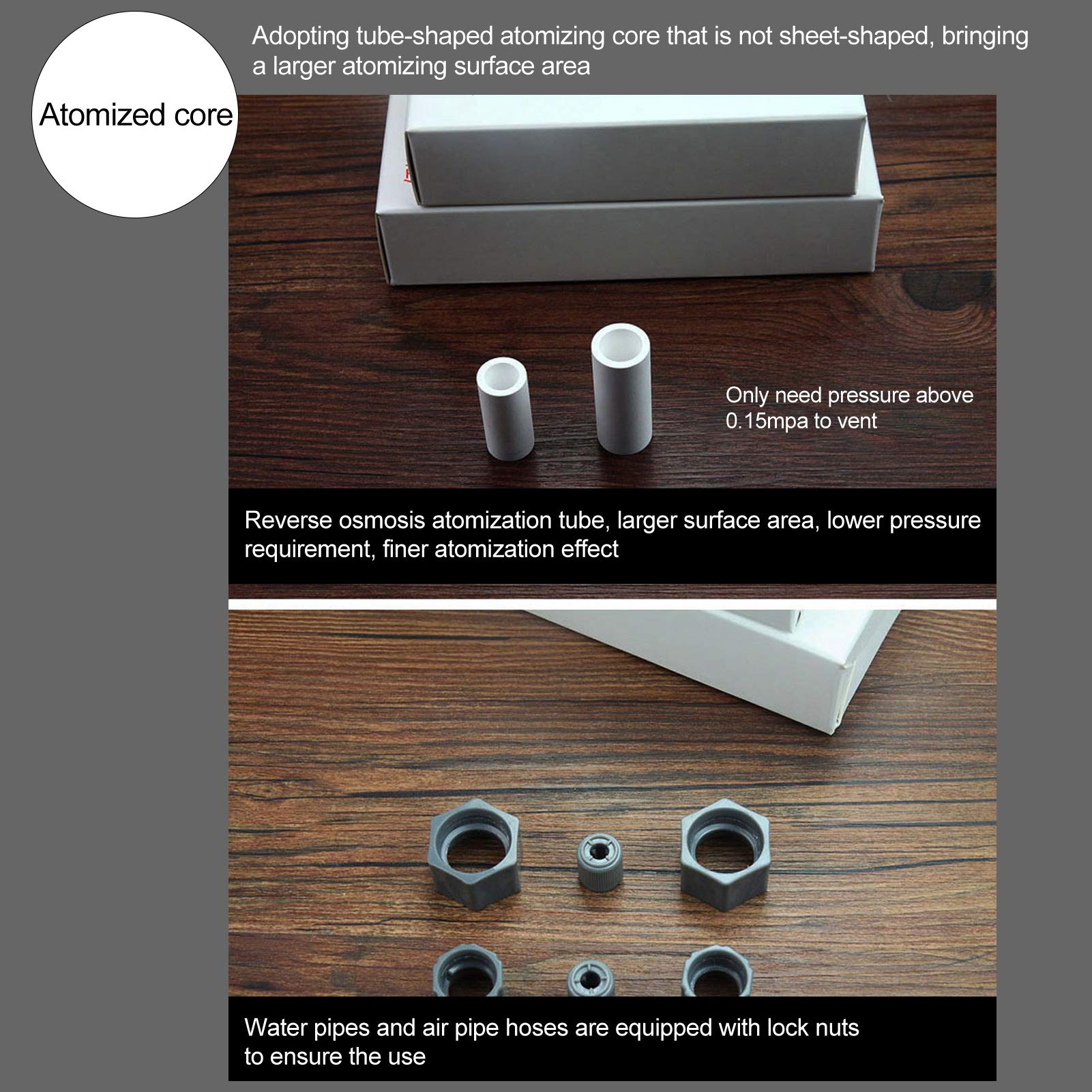 ["Good atomization effect】Reverse osmosis atomization tube, lower pressure requirement, finer atomization effect, only need pressure above 0.12 MPa to release air. Using a tube-shaped atomization core provides a larger atomization coverage area compared to conventional ones.",