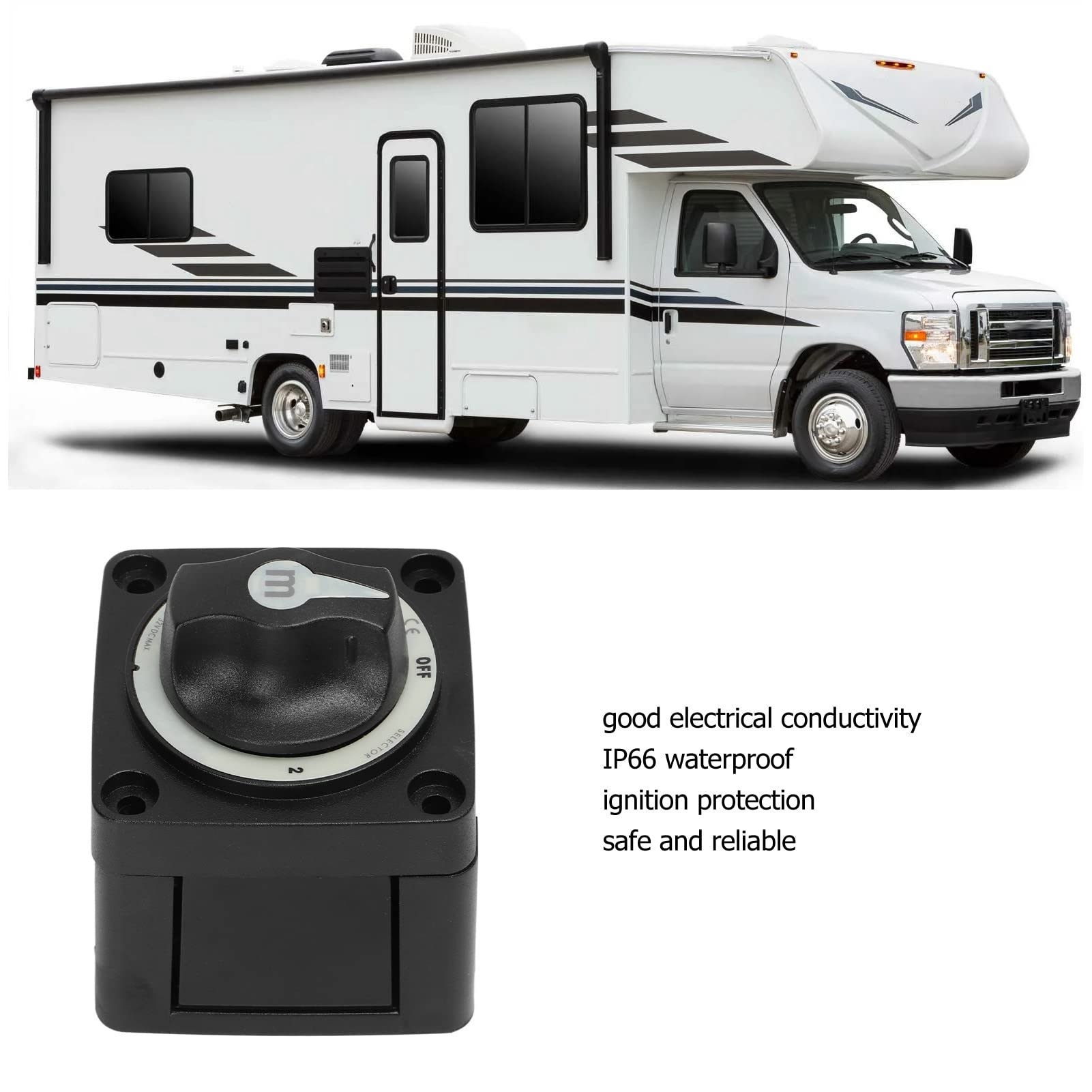 Advantages: The "closed before open" contact design allows switching between battery banks without power interruption, with 3 positions (OFF-1-2). The battery isolator switch has good electrical conductivity, IP66 waterproof, ignition protection, safe and reliable.