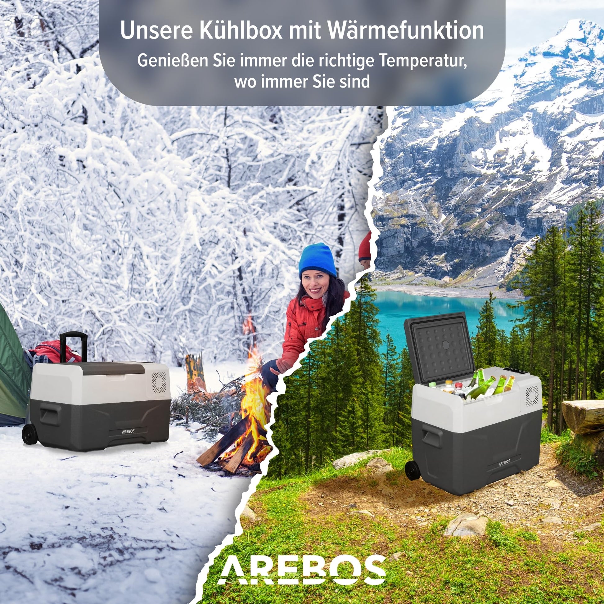 Arebos compressor cooler box with wheels 39 liters | Electric freezer box with APP & smart control | Mobile cool box with USB port | up to -20 °C | 12/24 V 230V | for car, truck, camping, boat, RV